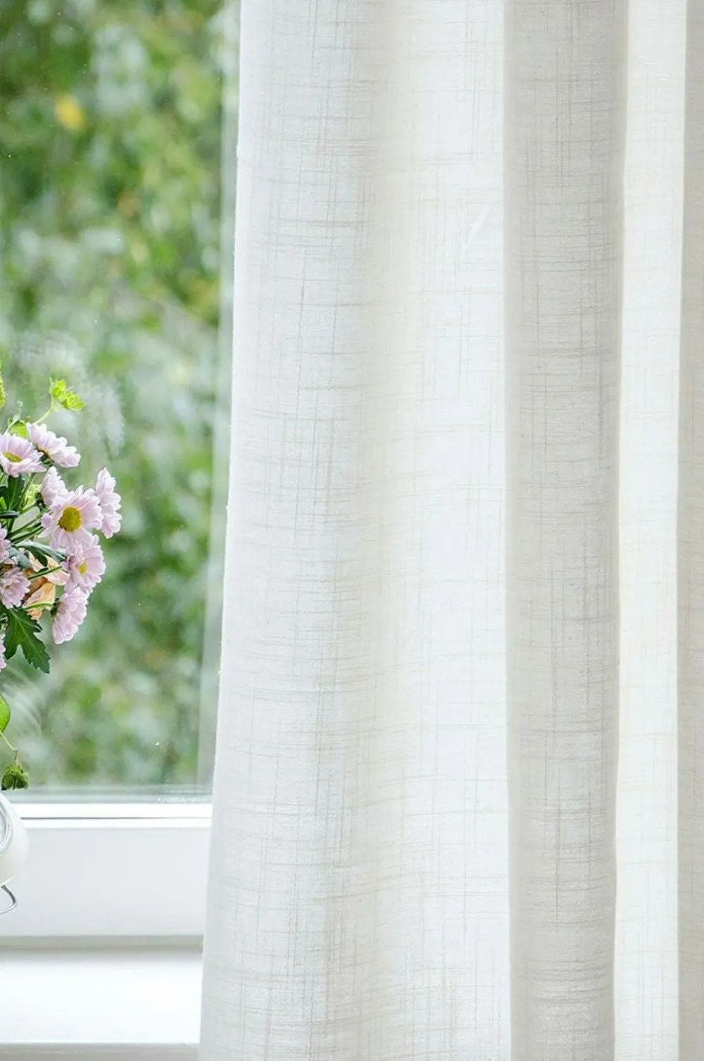 Gardin i rustik stil med linnedlook. Smart kombibånd med fire forskellige ophængningsmuligheder: direkte på stangen, med dybe plisseekroge, flæsekroge eller en moderne bølgestil. Gardinkroge medfølger ikke. En gardinlængde pr. pakke.