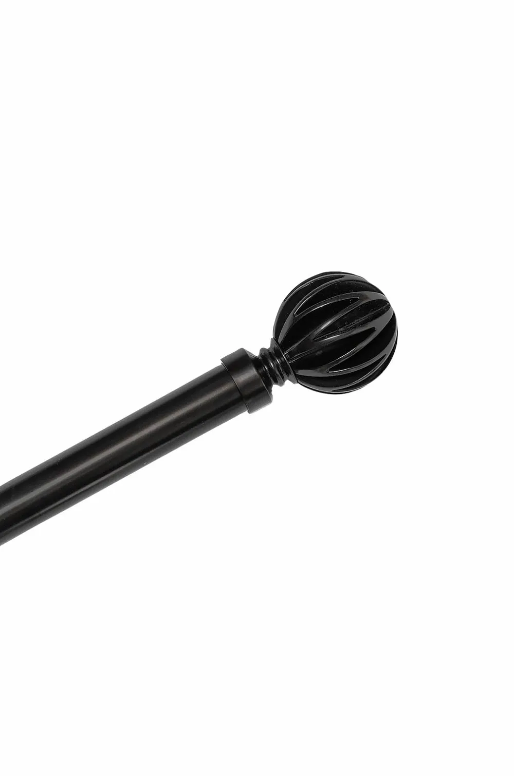 Komplet gardinstang i metal (25/28 mm) med dekorative finials. Sættet indeholder justerbare stænger (110-200 cm), 2 finials og 3 justerbare vægbeslag (7-9 cm).