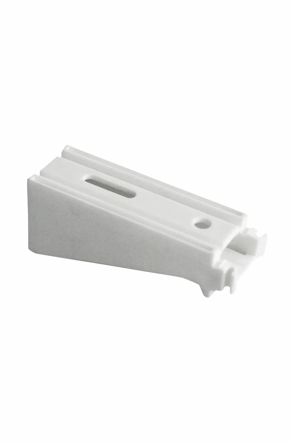 Enkel klikmontering af gardinskinnen Alex på væg eller i loft. Suppler med en vinkel, hvis du vil have gardinet længere ud fra væggen ved vægmontering.