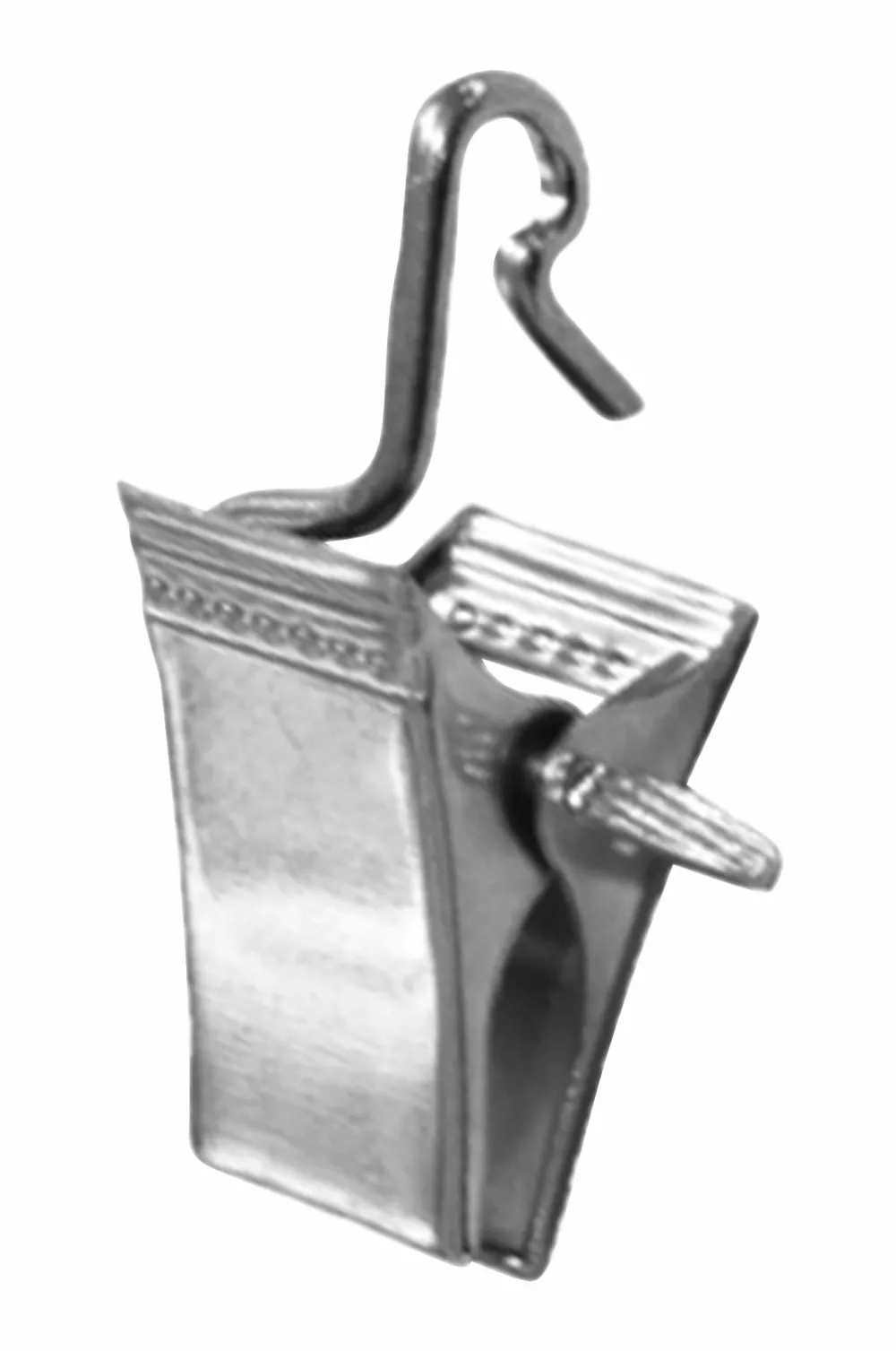 Klemmen fastgøres i glideren på skinnen og klemmes derefter fast i gardinet. 2,8 cm. Sælges i 20-pak.