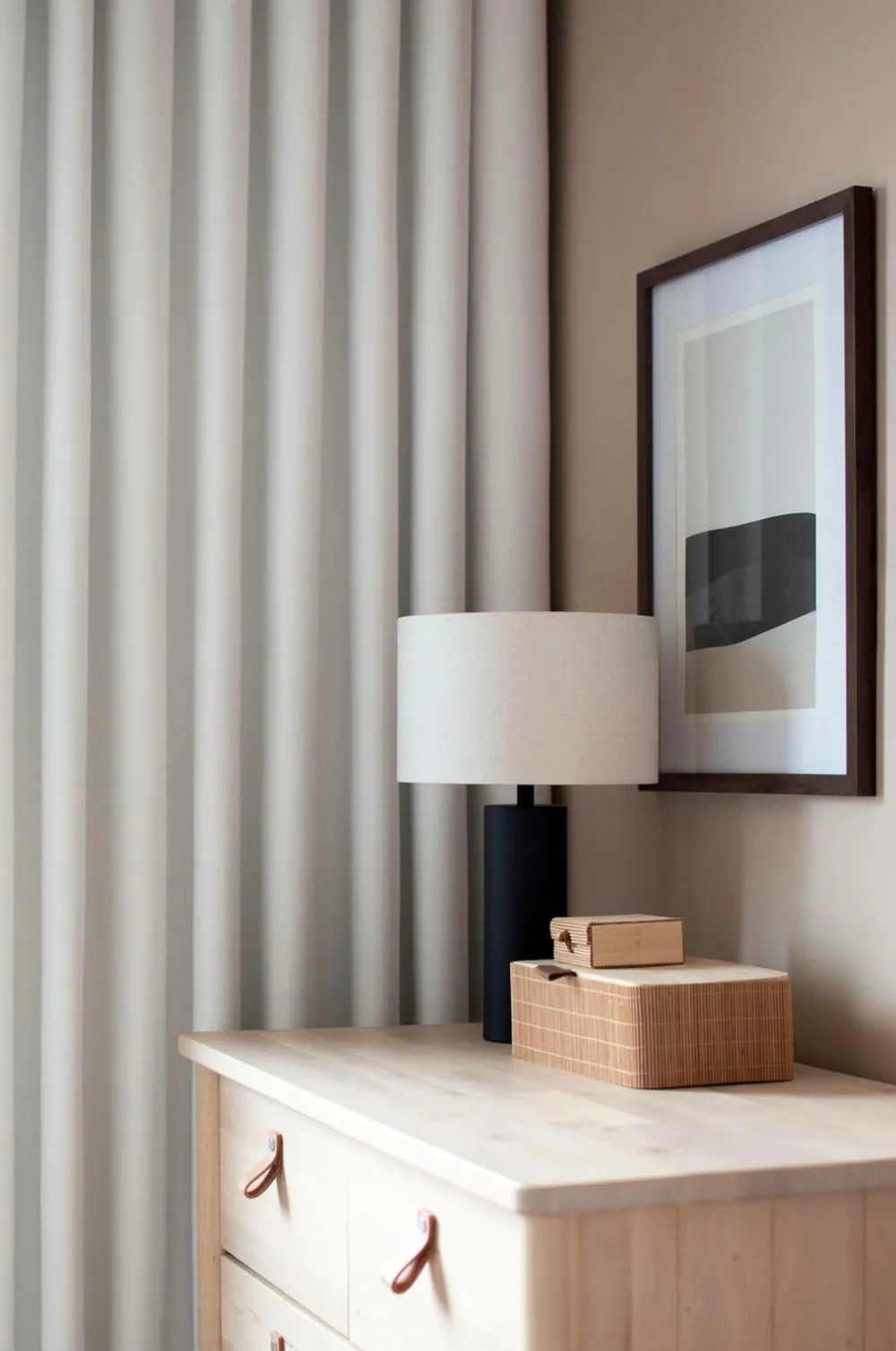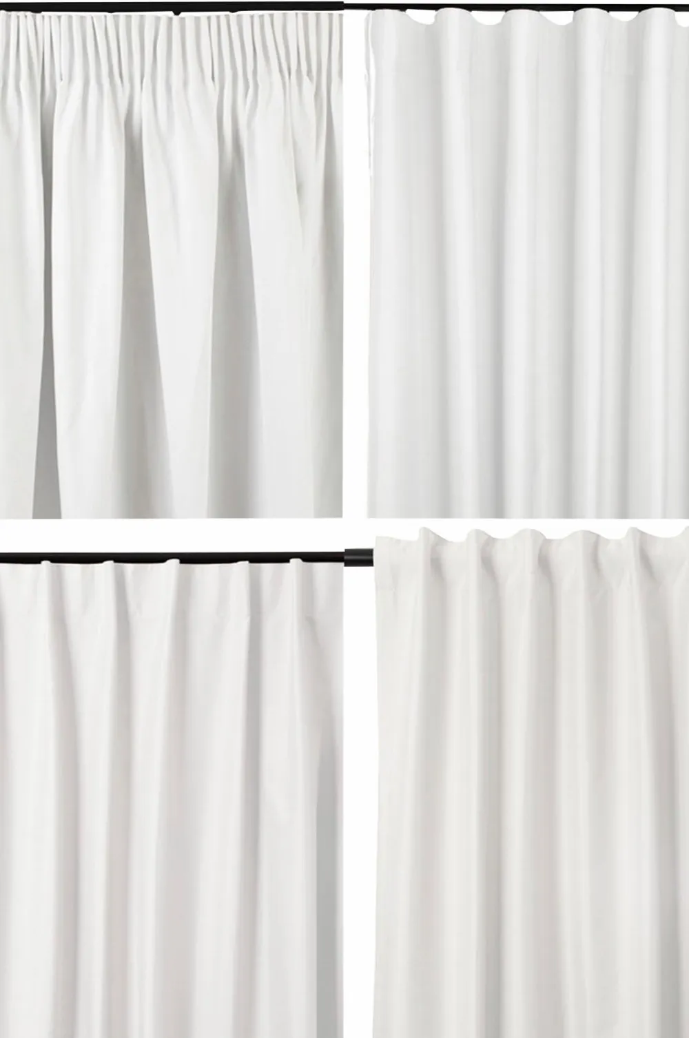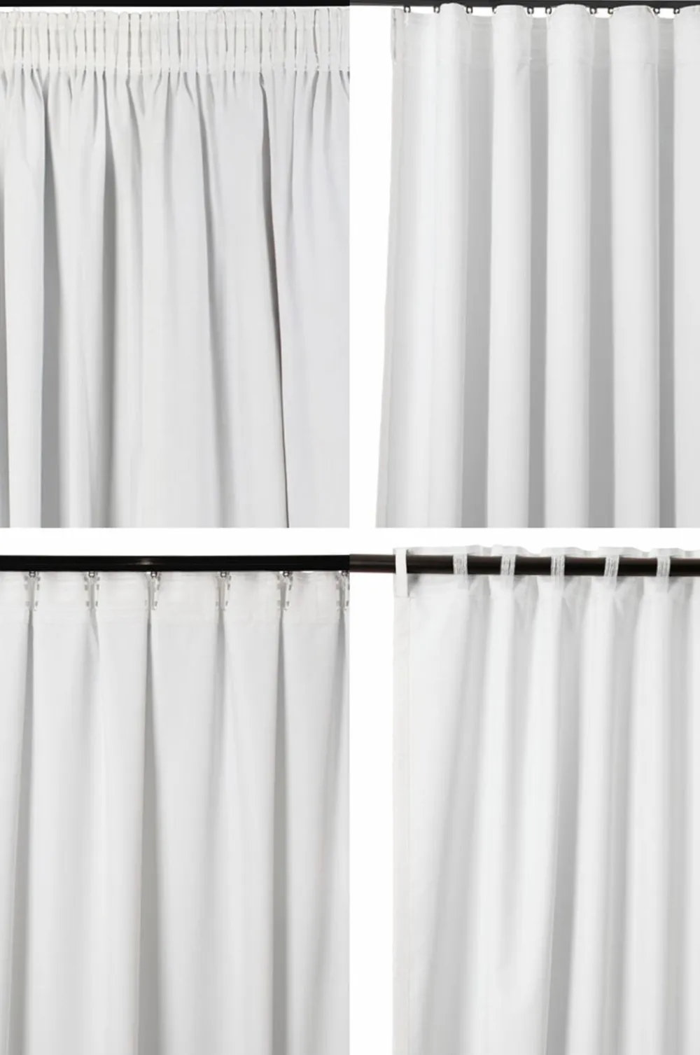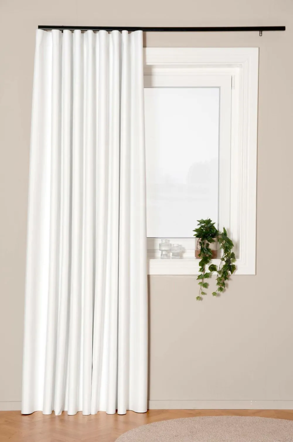 Mørklægningsgardin i en ekstra bred model med struktur og en let glans. Gardinet har et mørklægningslag på bagsiden, som blokerer lyset 100 %; bemærk, at dette ekstra lag også gør, at stoffet føles fastere og mindre blødt end et almindeligt gardin. Multifunktionelt gardinbånd til fire forskellige ophængningsmuligheder: direkte på stangen, med dybe plisseekroge, gardinkroge eller en moderne bølgestil. Gardinkroge medfølger ikke. En gardinlængde pr. pakke.