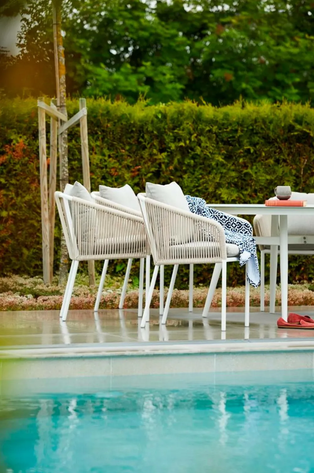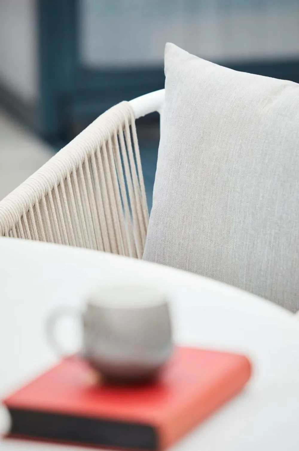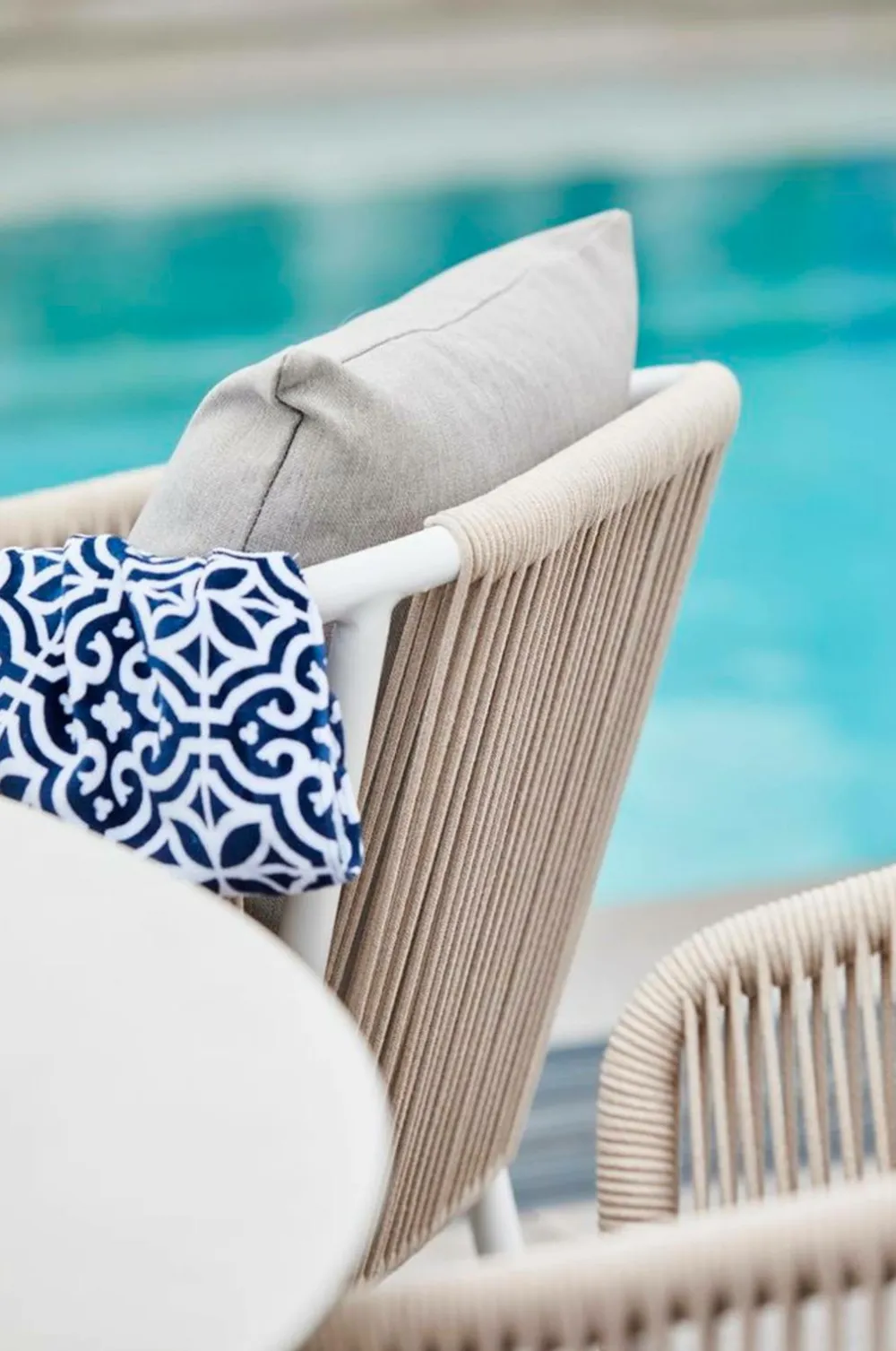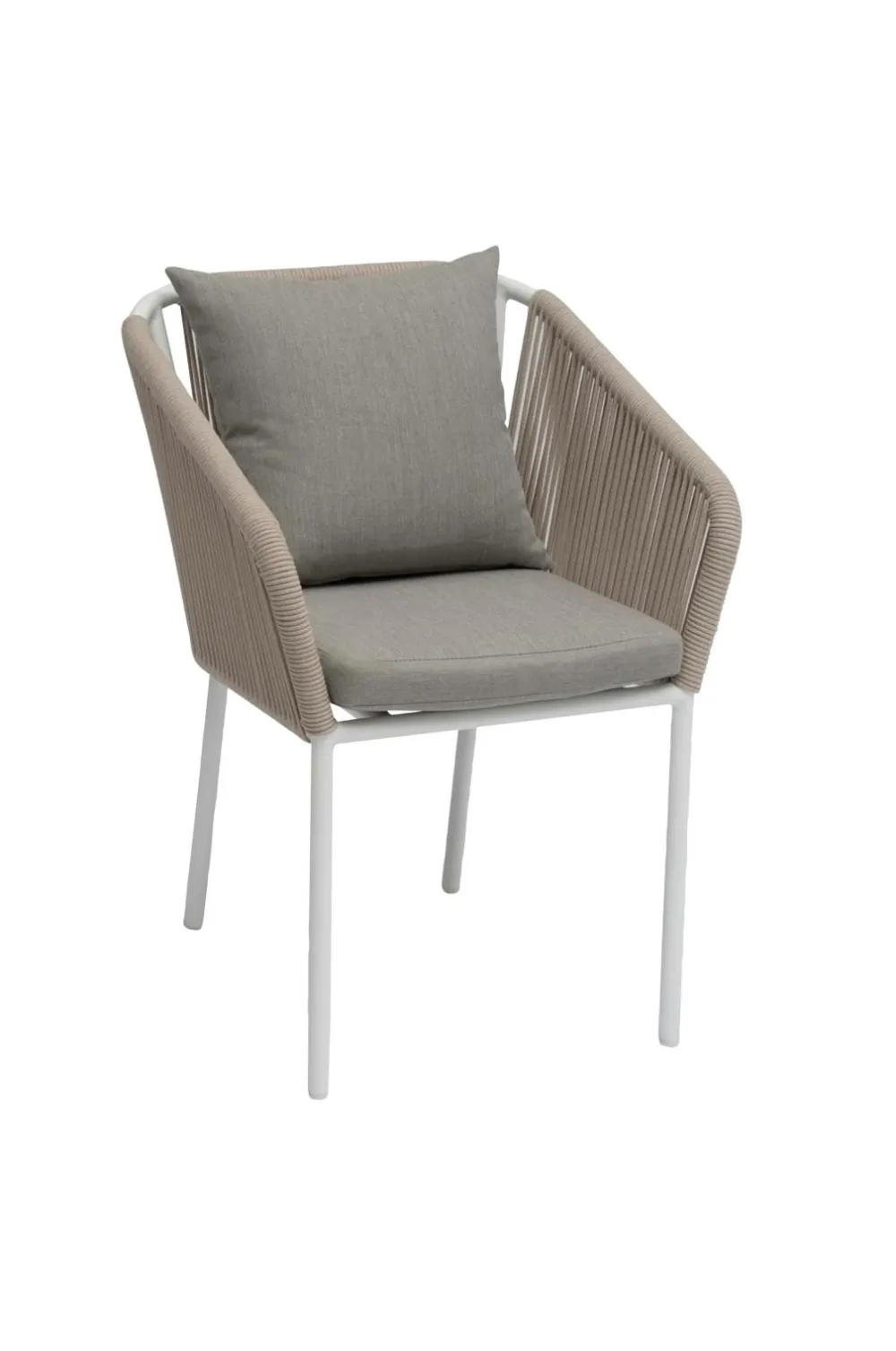 lersund Spisebordsstolen har et moderne og sofistikeret design, der passer til alle stilarter. Fremstillet af aluminium med vævede olefinreb, der giver et både holdbart og elegant udseende.