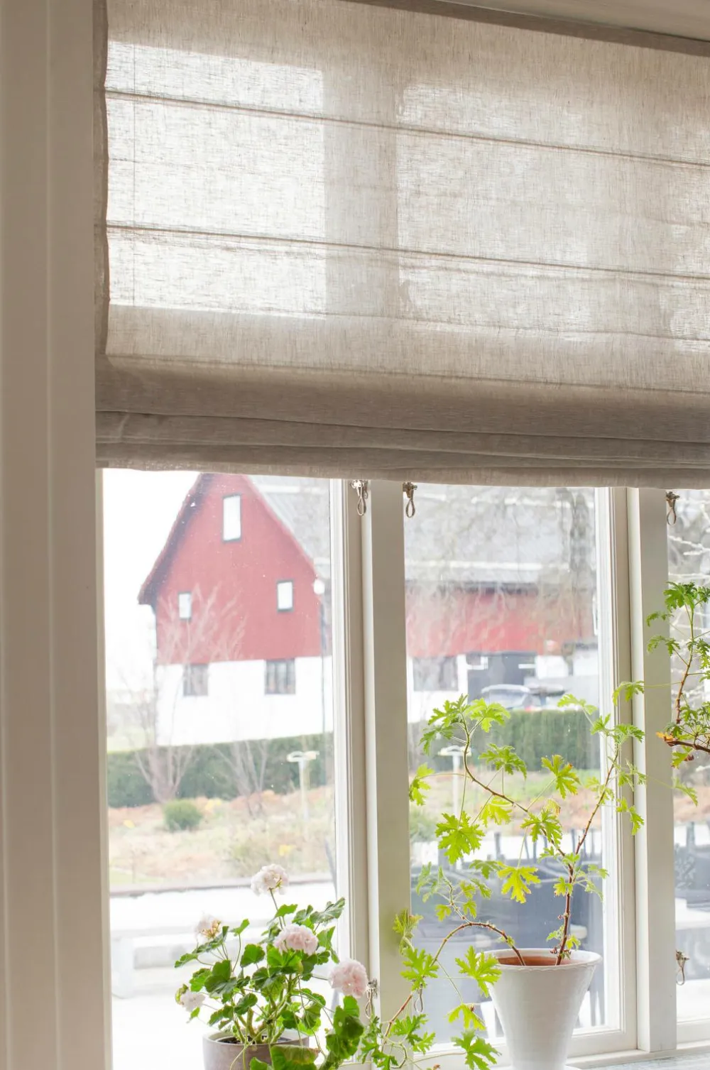 Sunday Foldegardinet har et fint vævet, flot rent hørstof, som er uvasket, hvilket giver foldegardinet et moderne, rent look. Sunday foldegardinet kan være et godt supplement, når det bruges sammen med Sunshine-gardinet. Foldegardinet har velcro i toppen for nem montering og kan nemt løftes op og ned ved hjælp af snore på bagsiden. Der medfølger en skinne til at fastgøre gardinet på væggen/loftet. Snoretræk på højre side. I højeste position er gardinets længde ca. 15-20 cm.