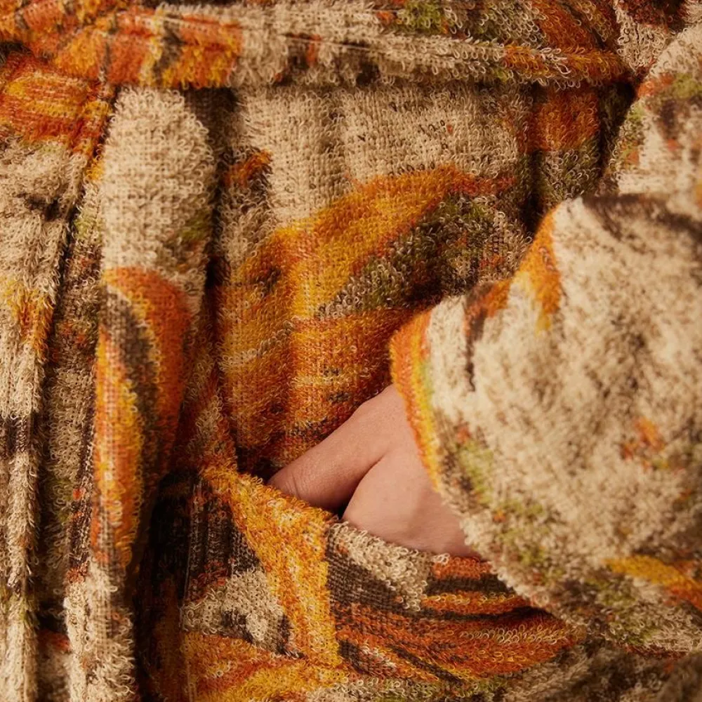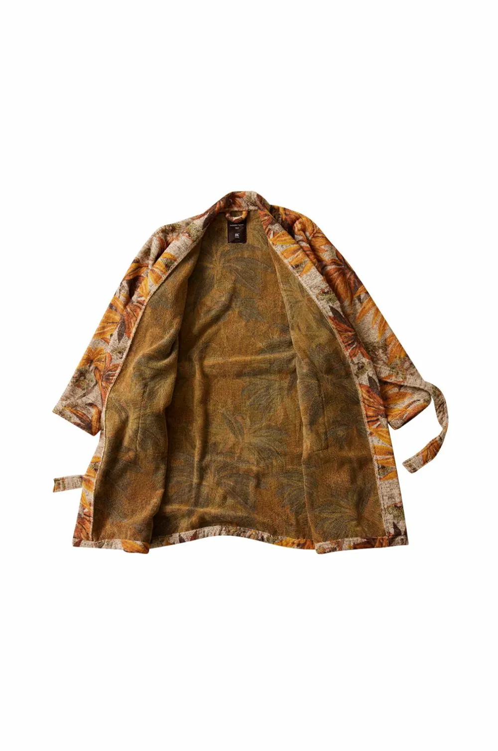 Inspireret af 1970’ernes vintage housecoats er Palmae-badekåben med sit tropiske twist den perfekte ledsager på vej ned til morgenmaden. Fremstillet i 100 % jacquardvævet bomuldsfrotté, som du aldrig vil have lyst til at tage af. Fås i to størrelser: S/M og L/Xl.