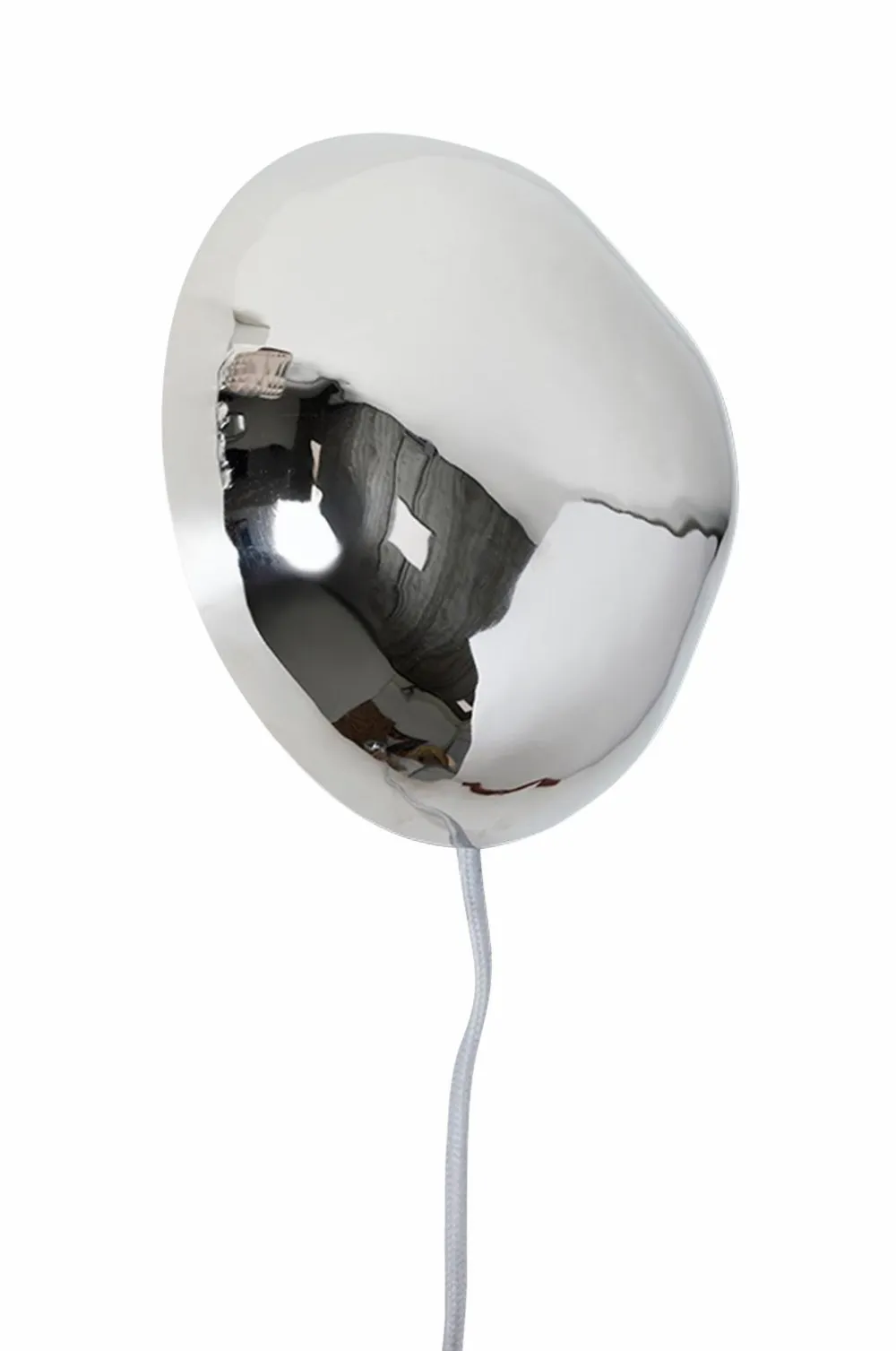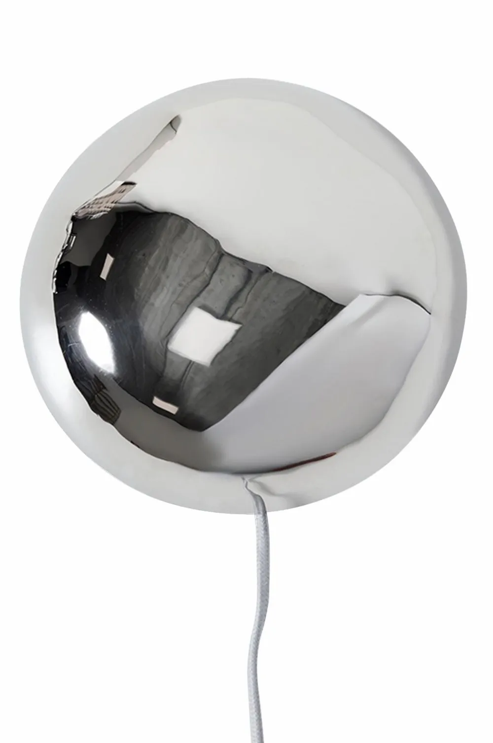 En elegant detalje på din væg – denne kugleformede lampe tilføjer karakter uden at være påtrængende. Den krombelagte overflade reflekterer rummet omkring sig og gør lys og arkitektur til en del af designet. Elegant, skulpturel og let futuristisk: et ægte blikfang til dristige interiører. Materiale: Jern.