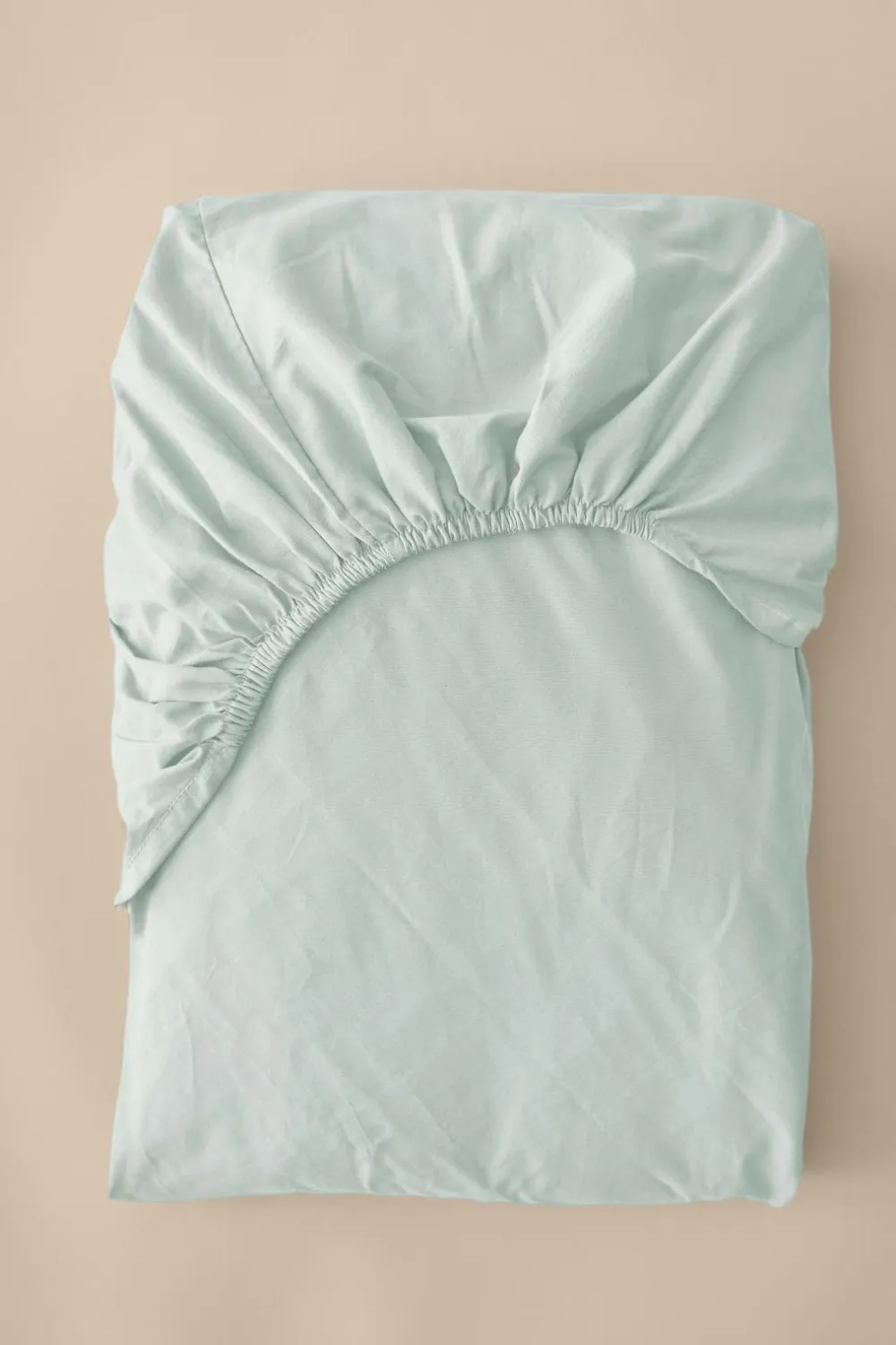 Faconsyet lagen i blød bomuld. Trådtæthed 144 TC. Elastikbånd i hjørnerne. Hjørneelastik 25 cm. Passer til madrasser op til 10 cm.