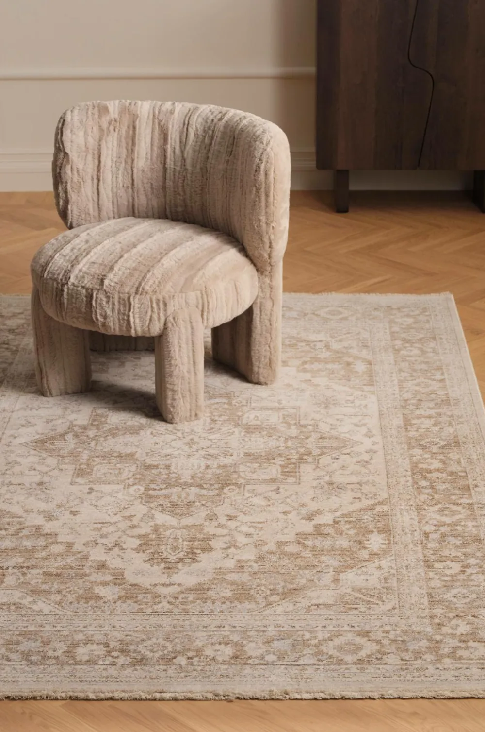 • Mønstret tæppe med tæt luv