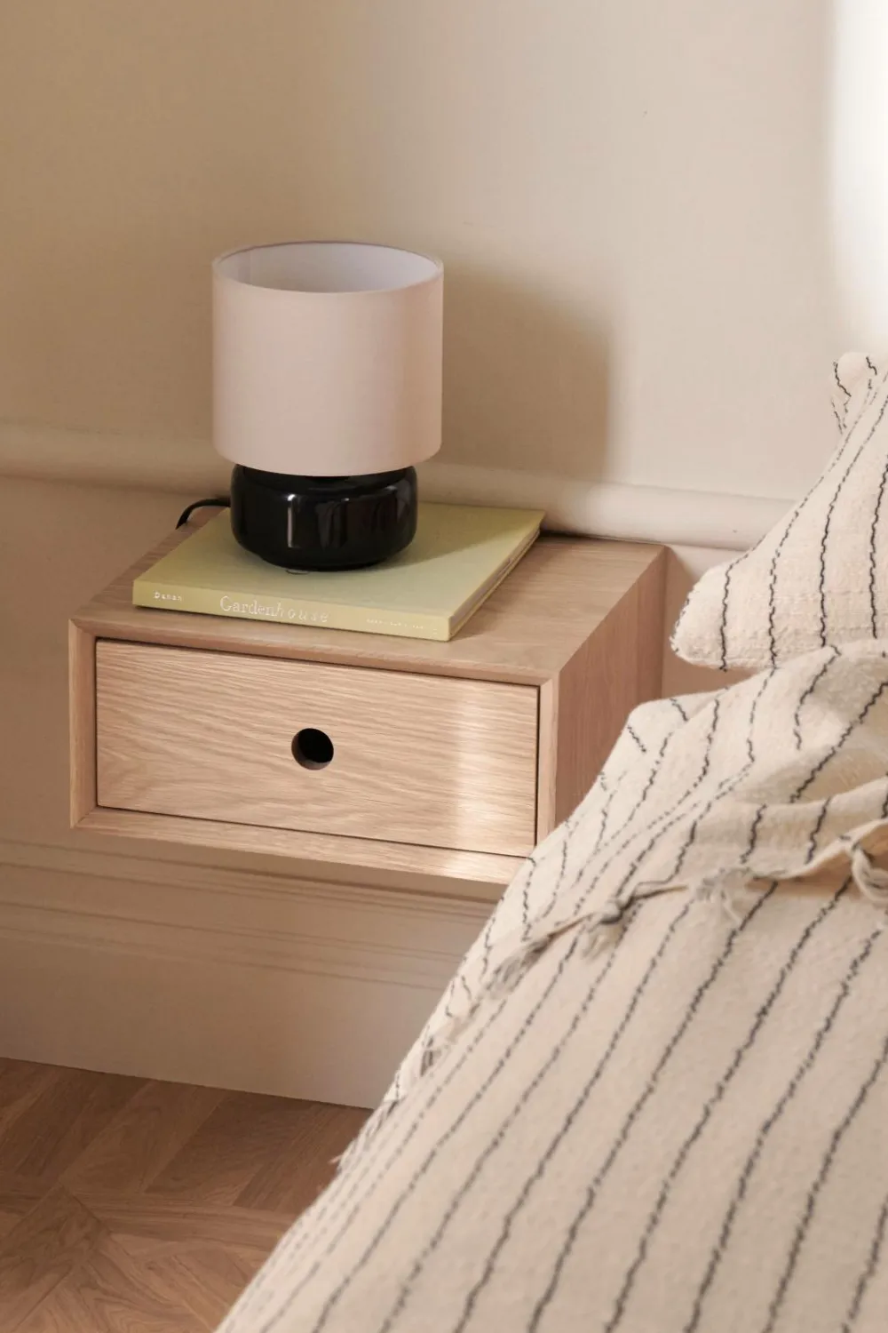 • Vægmonteret Sengebord i egetræsfinér MDF