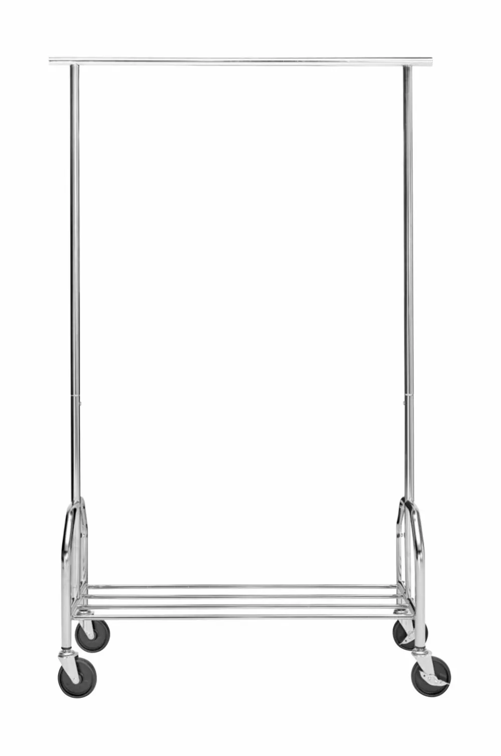 Et tøjstativ med kromfinish giver dig elegant opbevaring til tøj, sko og tasker. Det industrielle look giver kant, mens fire sorte hjul gør det nemt at flytte det mellem rummene. Placer kurve på hylden for ekstra organisering og skab den garderobe-følelse, du ønsker i dit soveværelse, entre eller påklædningsværelse.