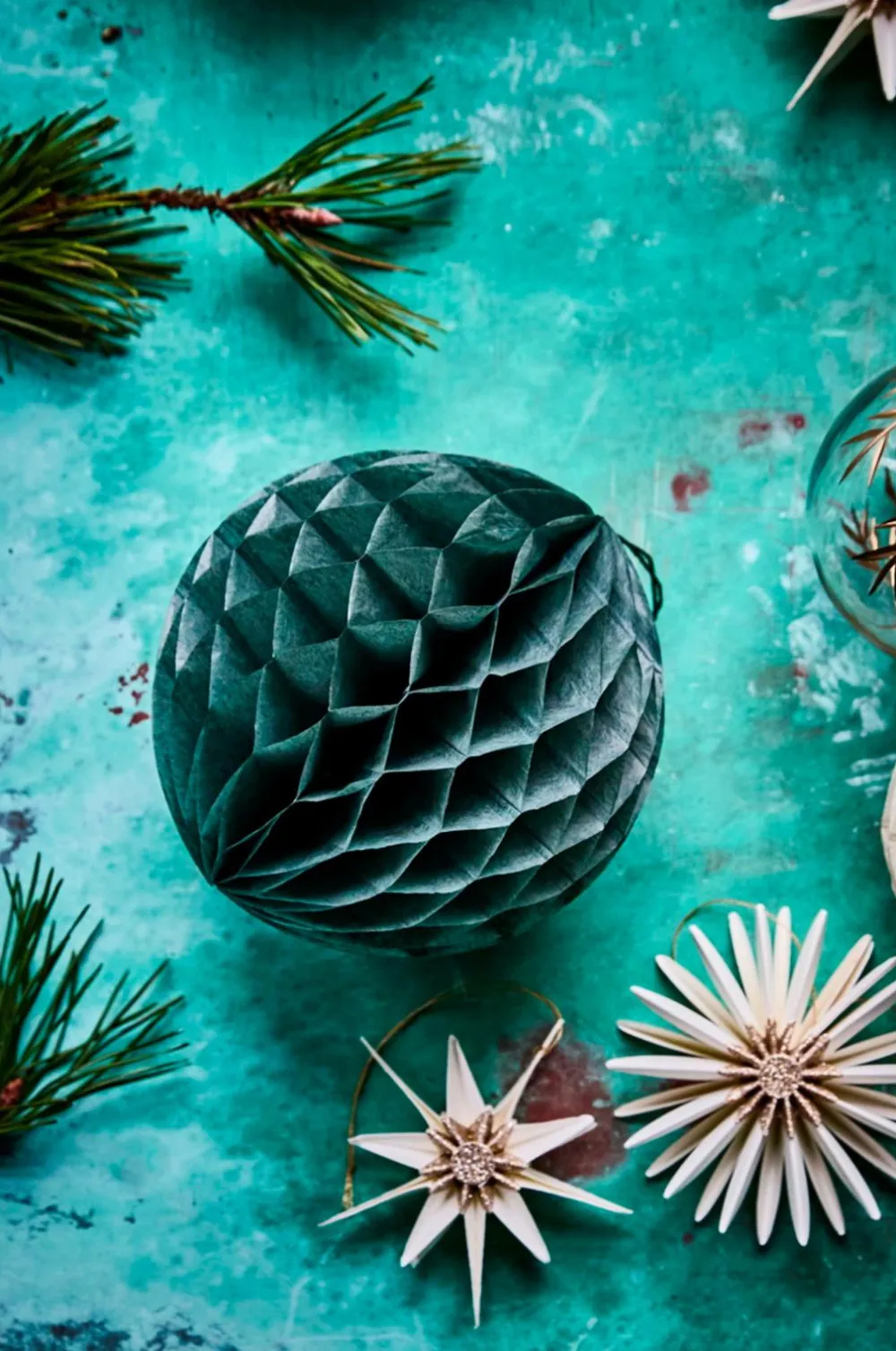 Tilføj et strejf af festlig charme og elegance til dit hjem med disse gyldne, håndlavede papirornamenter. Deres varme glød og alsidige design er perfekt til ethvert tema og gør dem ideelle til at hænge i vinduer eller pynte på bordet.