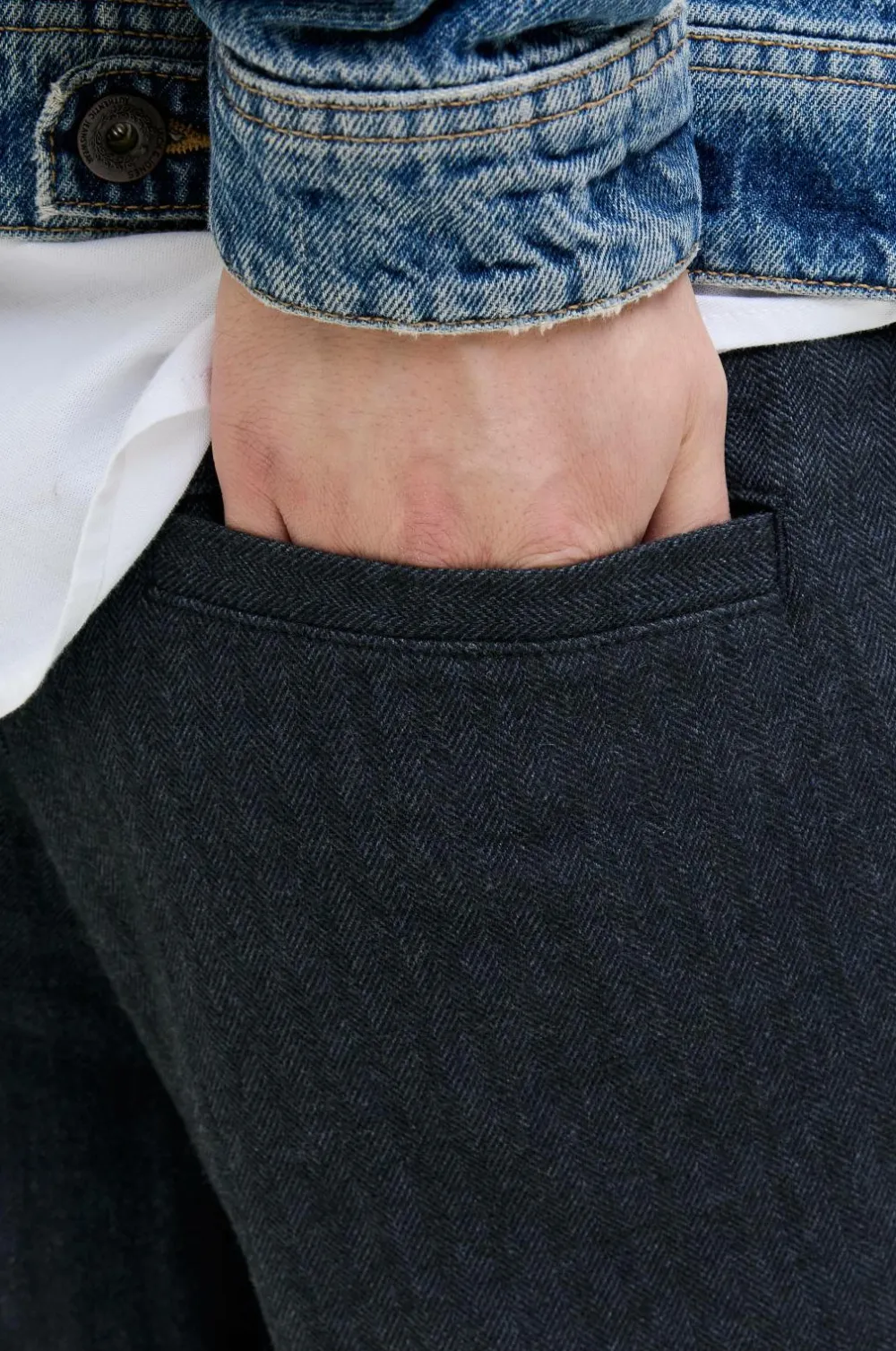 - Materiale: 72% Bomuld, 17% Polyester, 9% Viskose, 2% Elastan