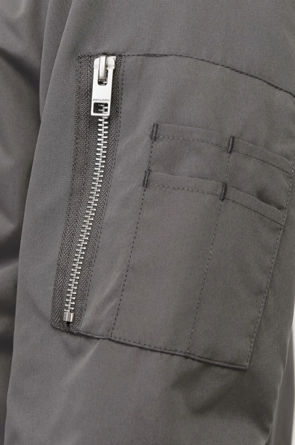 Jakke jjeRush Bomber fra Jack & Jones i tynd bombermodel med vandafvisende overflade. Lynlås og to lommer med lynlås foran. Ribkant i ærmet, kanten forneden og halsen. En lynlåslomme med penneholder på ærmet. Tyndt, vævet for. Længde ca. 67 cm i str. M.