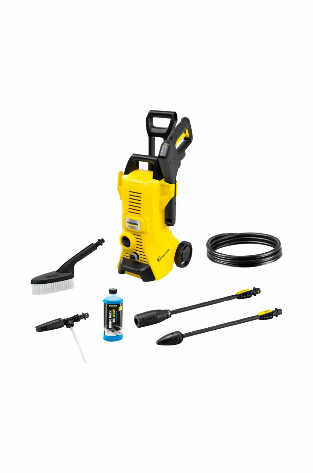Kärchers K 3 Power Control Car har udtrækkeligt teleskophåndtag for praktisk transport og opbevaring, et stativ for bedre stabilitet, tilbehørsholder, højtrykshåndtag og kabel samt Kärcher Quick Connect-systemet. Desuden kan stativet bruges som bærehåndtag.