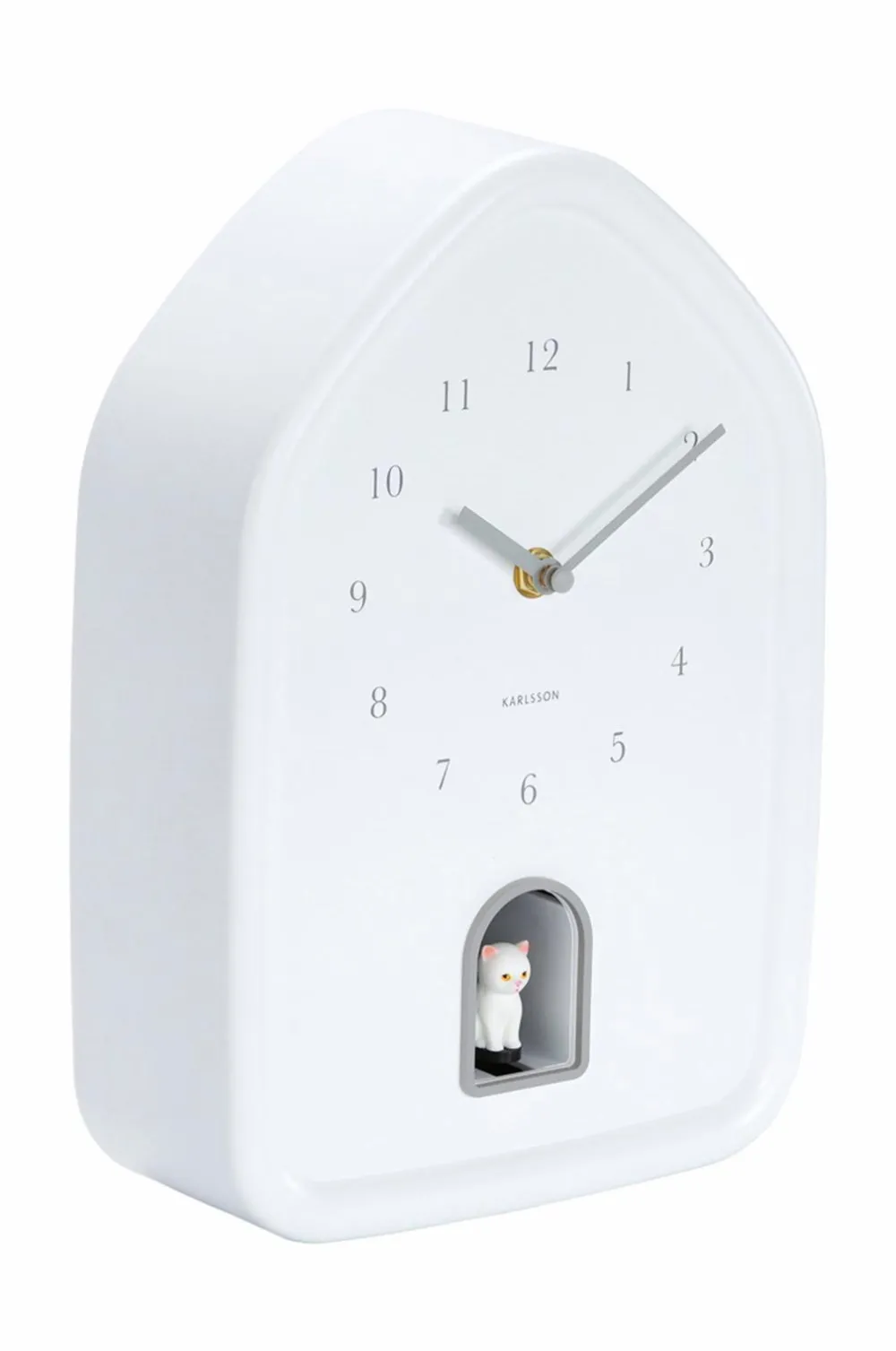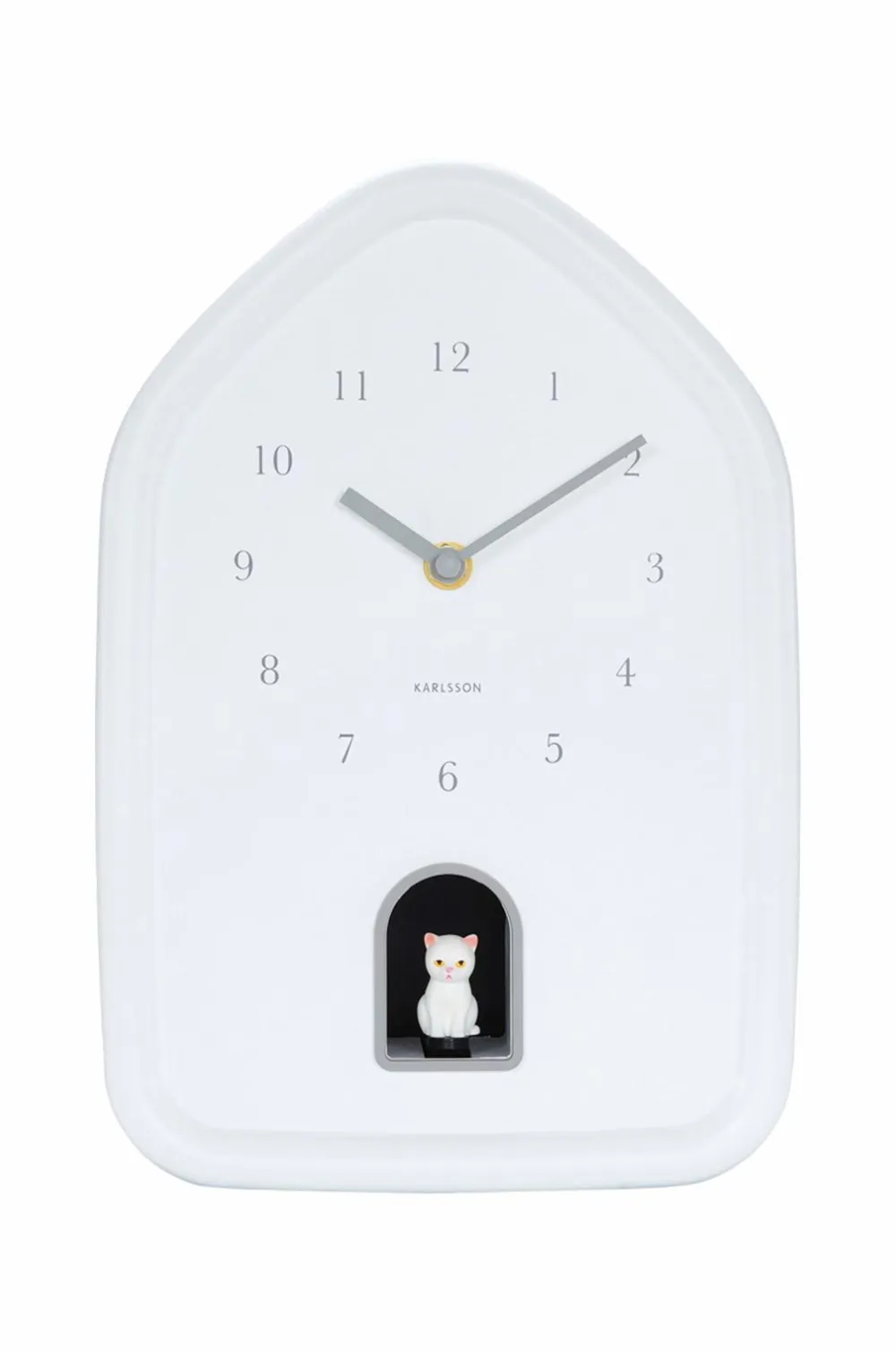 Karlssons modern kitty vægur kombinerer enkelhed med et legesygt touch. Hver time dukker en sød killing op og miaver sagte. Det husformede design og de matte farver giver uret et varmt, modern look. Perfekt til katteelskere og dem, der sætter pris på elegant, legesygt design.