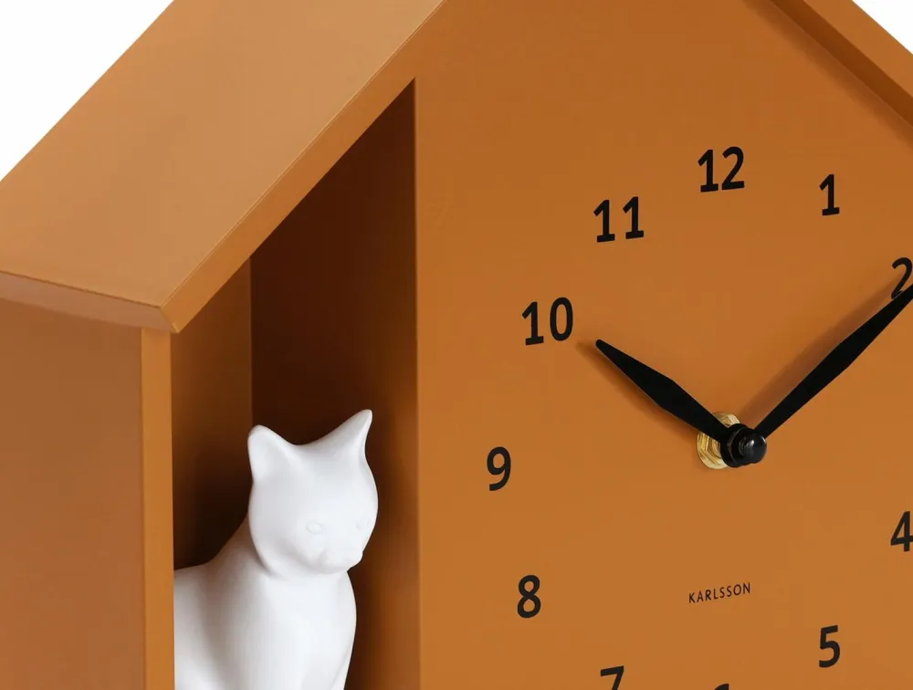 Karlsson Vægure>Vægur Sitting Cat Okkergul
