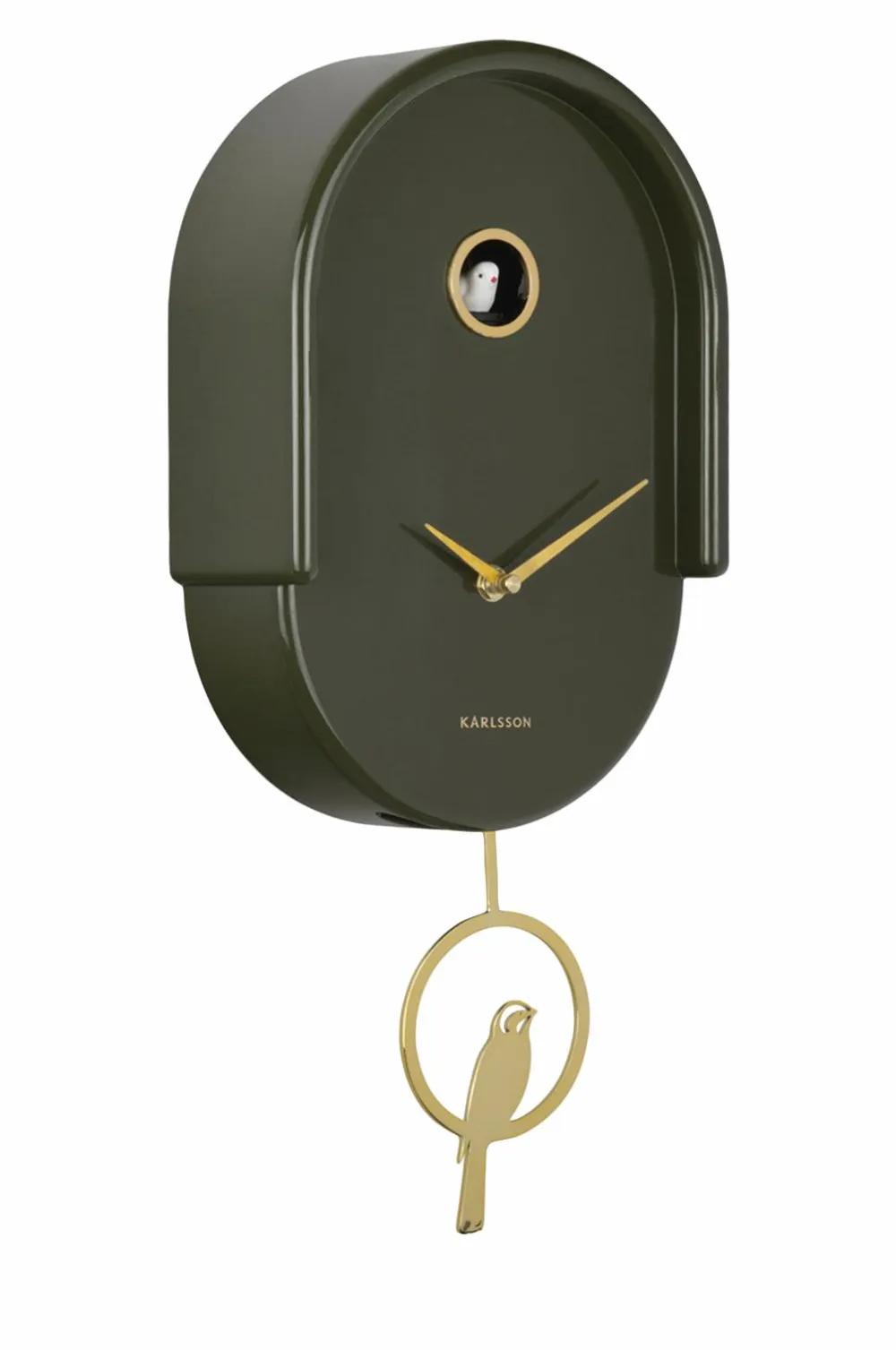 Design med karakter. Karlssons vægur ” tweet “, designet af Callum Macsorley, udstråler luksus med sin blanke finish og raffinerede detaljer. Uret har et pendul og en elegant fugleakcent, der kommer til live på bestemte tidspunkter. De runde former og guldfarvede elementer giver det et legesygt, men stilfuldt look. Et slående objekt, der helt sikkert vil appellere til designelskere.