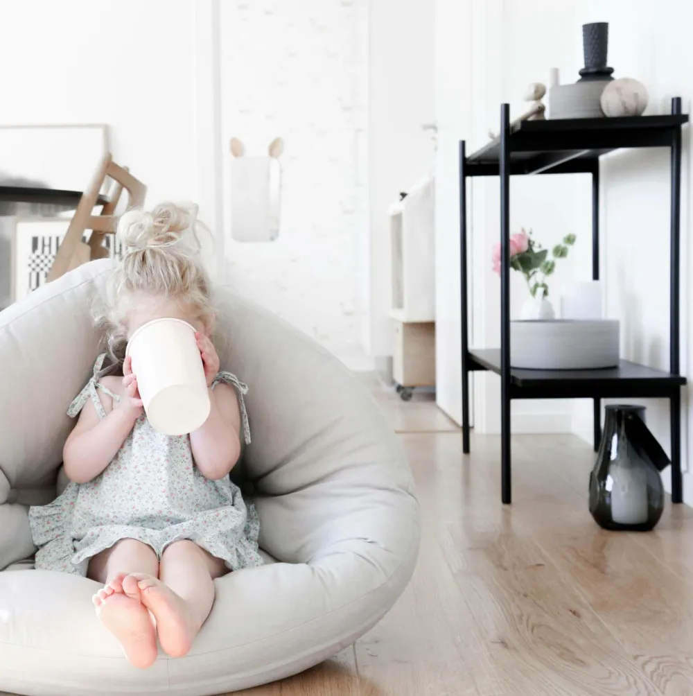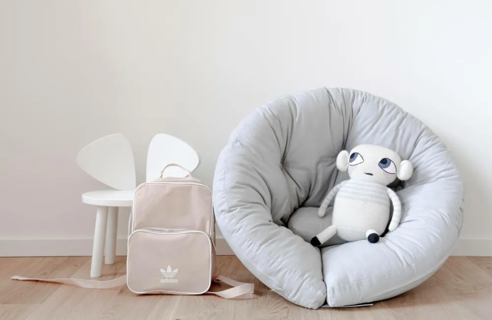Read . Unstrap . Play – Mini Nido er perfekt til krudtugler, som her får et personligt rum. Løsn de fire velcro stropper på bagsiden af Mini Nido, og det bliver hurtigt en halvmåne-futon, velegnet til en lur, som improviseret seng eller det perfekte legested. Sæt to åbne Mini Nidos sammen, og skab en indbydende cirkelrund seng, hvor barnet kan nyde både leg og afslapning. Design af Anders Backe, Anne-Sofie Voss, Ida Sofie Lange, Lars Wigh og Troels Rask Pedersen for Karup Design.