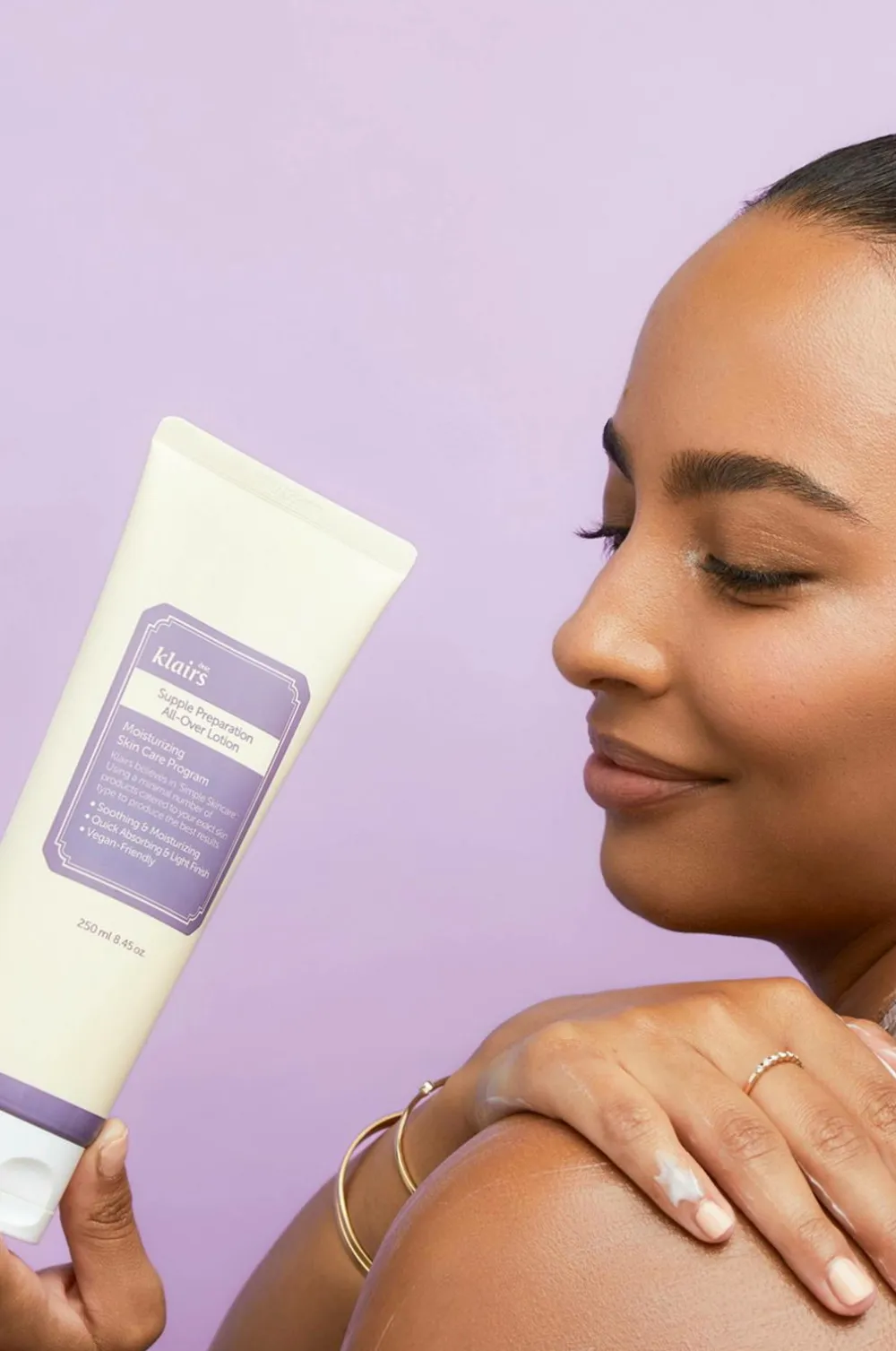 En 100% veganervenlig lotion til alle hudtyper, der kan bruges på krop og ansigt, men også på tørre hårspidser. Den absorberes let i huden og giver en blød og glat følelse.