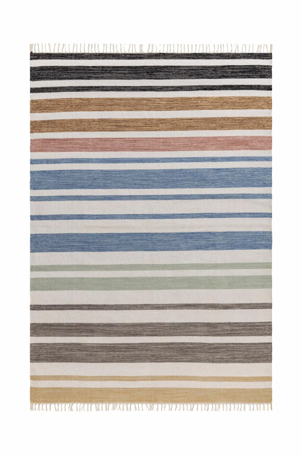 Dette tæppe er vævet af ren bomuld og er både slidstærkt og blødt, hvilket gør det til en perfekt tilføjelse til både moderne køkkener og hyggelige hjem på landet. Da hvert tæppe er håndlavet, kan der forekomme små variationer i vævning, farve og størrelse, hvilket gør hvert stykke unikt. En størrelsesvariation på ca. 3-5 % i forhold til de angivne mål er også en naturlig del af den håndværksmæssige produktionsproces.