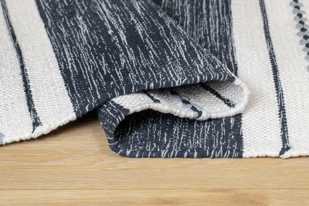 Dette er et håndvævet bomuldstæppe, hvilket betyder, at mønster og farve kan variere, hvilket gør hvert tæppe unikt. Tæppet er vævet i ren bomuld, hvilket gør det både blødt, slidstærkt og holdbart. Det skaber en hyggelig følelse, der giver liv og samtidig dæmper lyd.