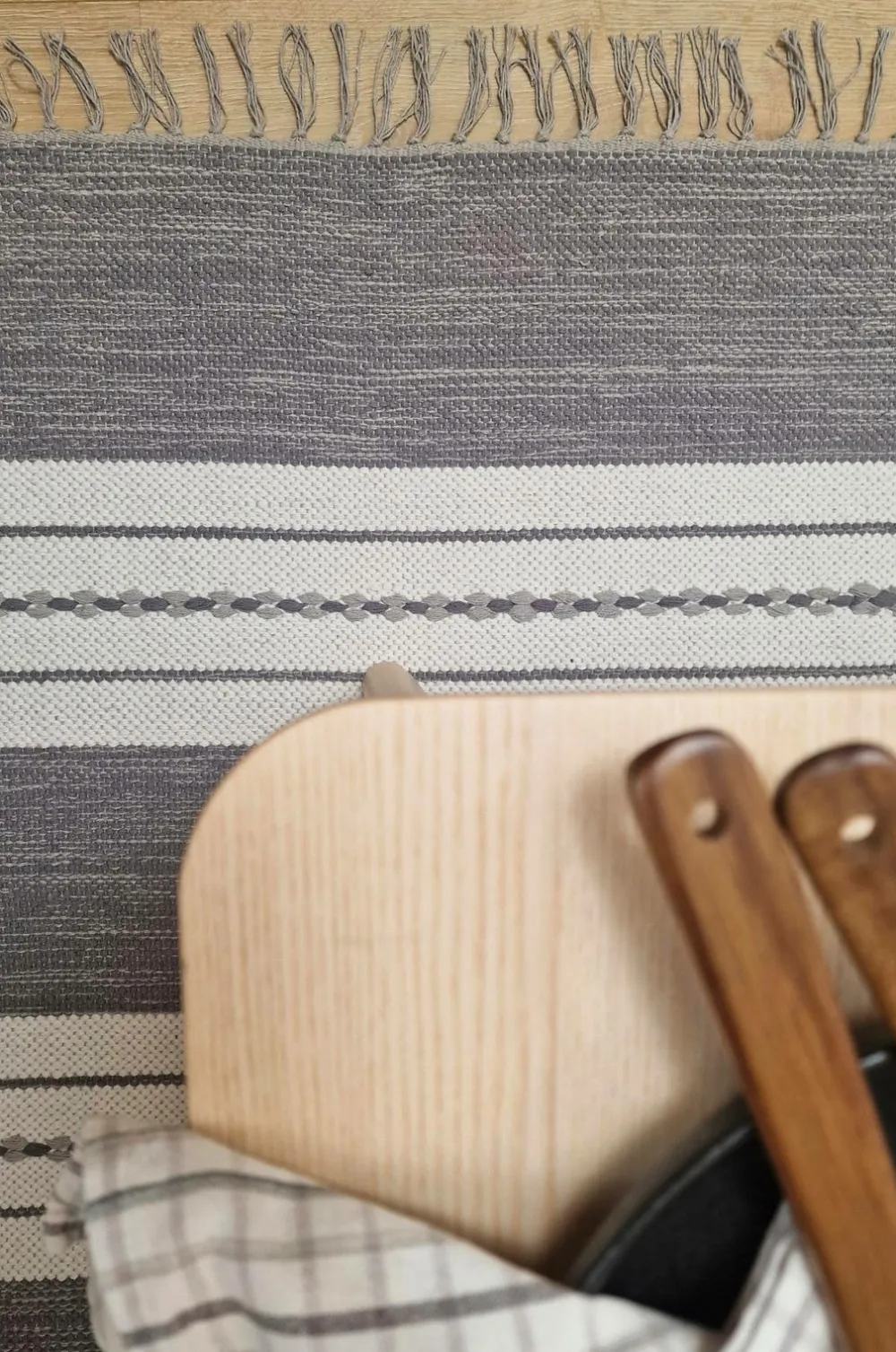 Yarn carpet sund er en serie stribede bomuldstæpper med de klassiske frynser. Da sund er vendbar og kan bruges på begge sider, giver det tæppet en lang levetid, fordi man på den måde får to tæpper i ét. Garntæpper er et klassisk element i det svenske hjem og passer lige så godt i køkkenet som i soveværelset eller entreen.