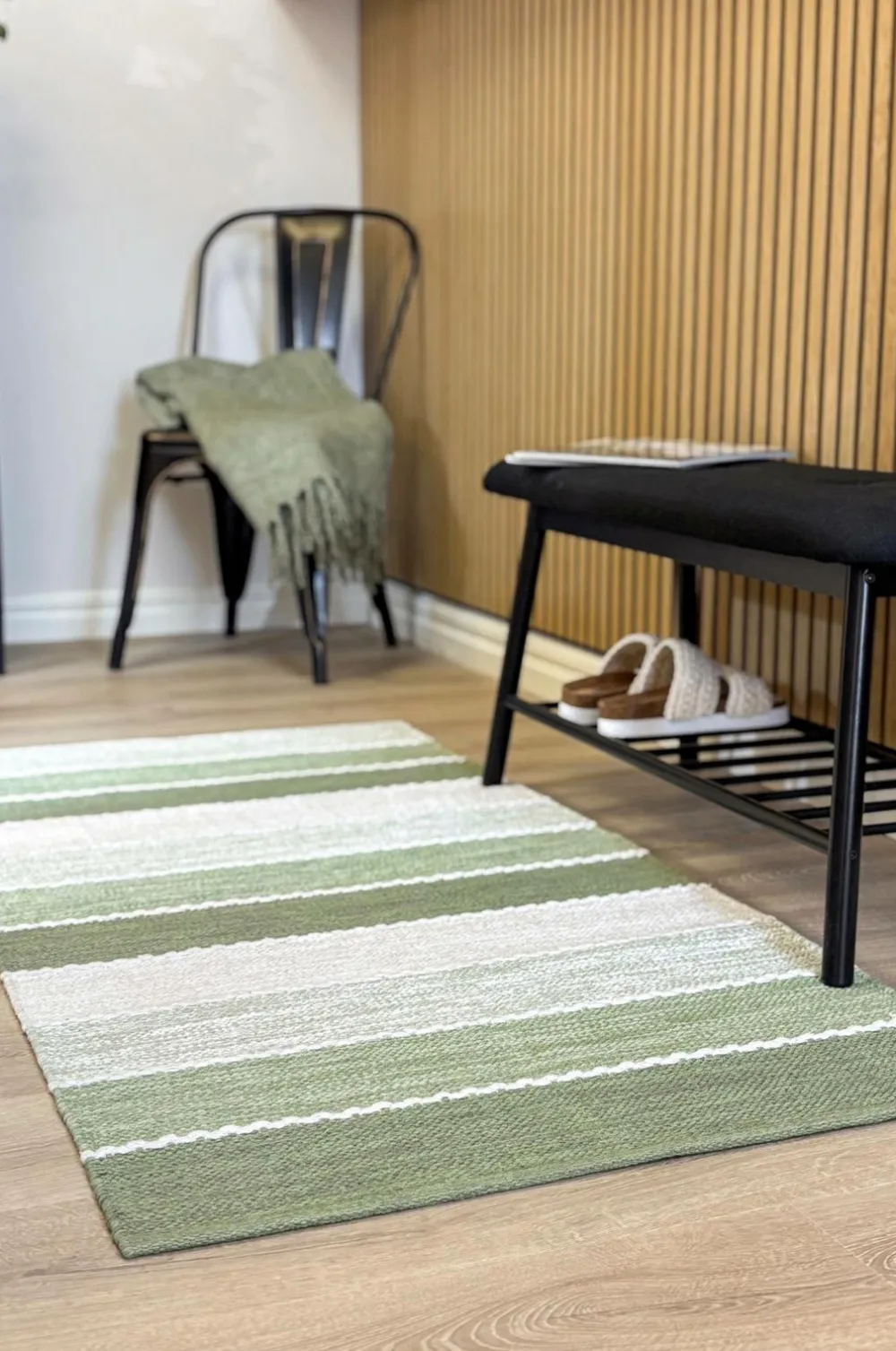 Båstad er et stilfuldt, stribet, håndvævet garntæppe, der giver et levende præg til ethvert rum. Farverne skifter gradvist fra mørkere nuancer i kanterne til lysere toner i midten, mens hvide syninger elegant markerer overgangene. Tæppet er fremstillet af ren bomuld og er både slidstærkt og blødt. Den brede farvepalet gør, at båstad passer perfekt til både minimalistisk og moderne interiør.