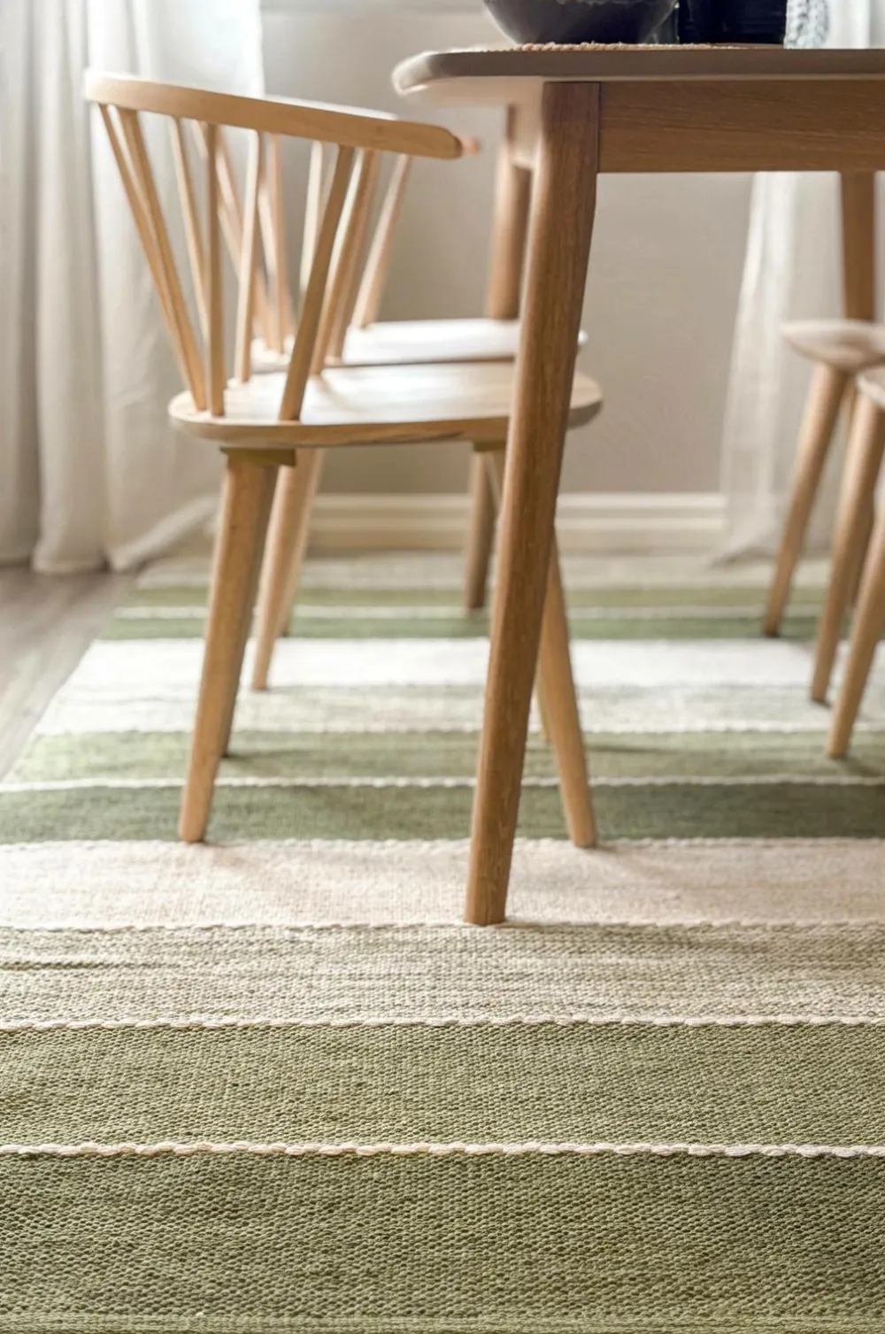 Båstad er et stilfuldt, stribet, håndvævet garntæppe, der giver et levende præg til ethvert rum. Farverne skifter gradvist fra mørkere nuancer i kanterne til lysere toner i midten, mens hvide syninger elegant markerer overgangene. Tæppet er fremstillet af ren bomuld og er både slidstærkt og blødt. Den brede farvepalet gør, at båstad passer perfekt til både minimalistisk og moderne interiør.