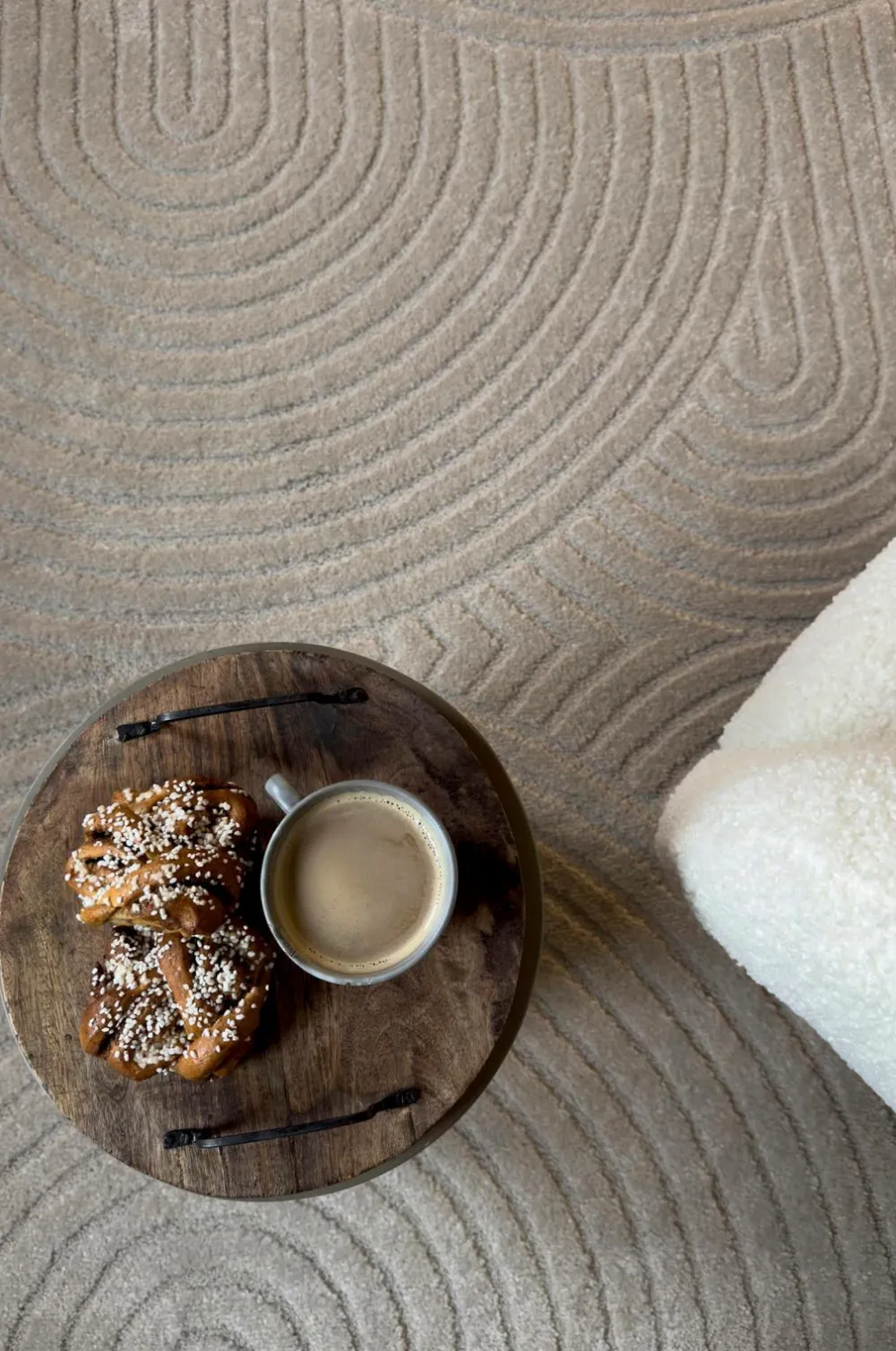 Drej gerne tæppet for at få et mere jævnt slid, hvis det ligger ved siden af en sofa, et bord eller noget andet. Hvis uheldet skulle være ude, så fjern mindre pletter forsigtigt med et håndklæde, lunkent vand og evt. et mildt rengøringsmiddel.