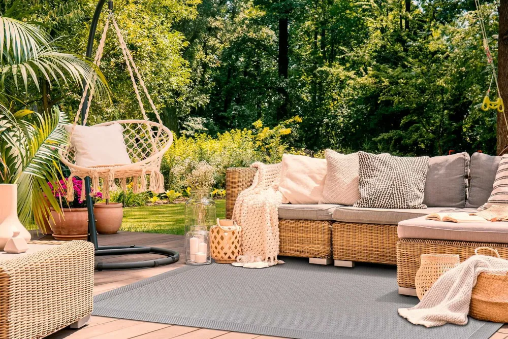 Giv din terrasse en hyggelig og hjemlig følelse med et tæppe. Da tæppet er lavet af 100% polypropylen og ikke indeholder jutetråde, betyder det, at Miami kan tåle væde og derfor er lige velegnet indendørs som udendørs. Perfekt, når du vil have et slidstærkt tæppe, der holder længe!
