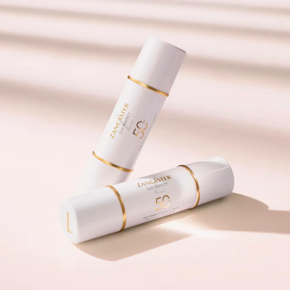 Sun Perfect by Lancaster er vores mest avancerede solplejeserie, der kombinerer anti-aging-egenskaber med solbeskyttelse til brug hele året rundt. Den avancerede Sun Perfect Airy Clear & Tinted Duo Stick SPF 50 indeholder Lancasters eksklusive og avancerede Full Light Technology, der beskytter mod solens stråler sammen med Anti-aging Technology, det naturlige Sun Repair System og Glow Booster Complex. Den giver huden bredspektret beskyttelse mod UVB, UVA, synligt lys og infrarøde stråler og forebygger solskader, samtidig med at den styrker hudens forsvar mod fremtidige solskader. Produktet forebygger og korrigerer også rynker, fine linjer og mørke pletter. Det forbedrer også hydreringsniveauet og hudens struktur, da det forstærker hudens naturlige udstråling. Hudtonen ser jævn og ungdommelig ud med en naturlig glød hele året rundt.