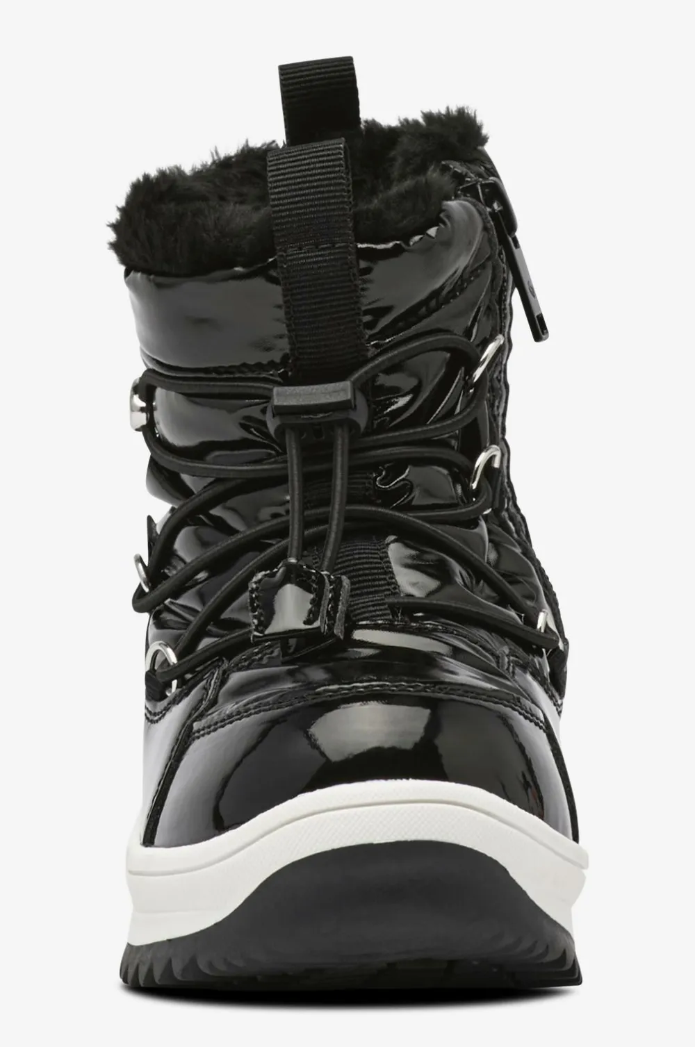 • Vandtætte, varmt forede vinterstøvler i blankt tekstil med forstærkninger i kunststof