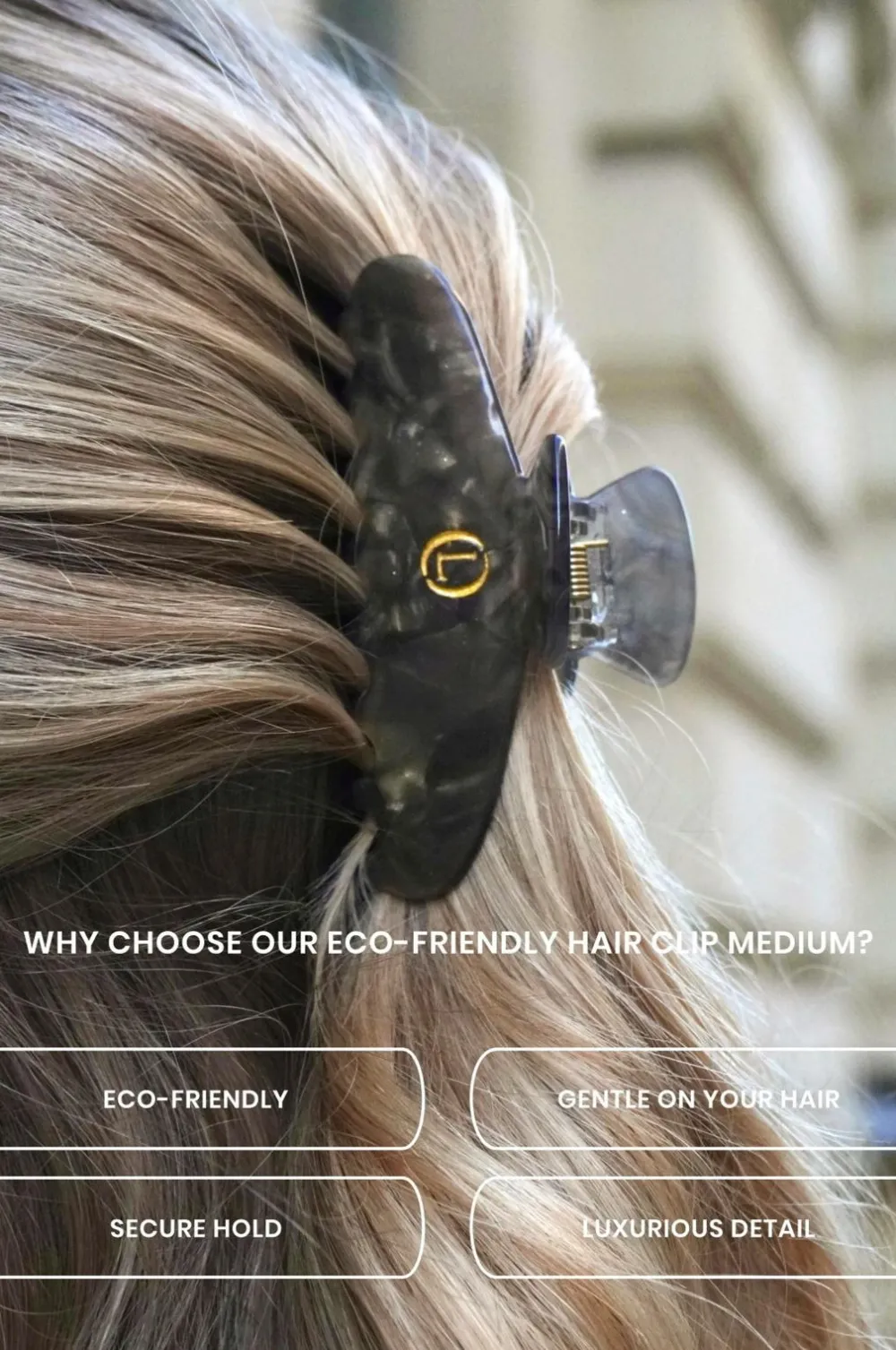 En smuk klospænde, der er fremstillet af elastisk celluloseacetat – et førsteklasses, miljøvenligt materiale, der ubesværet holder dit hår på plads. Med sit slanke, lige design og store størrelse kan den holde selv tykke, krøllede lokker sikkert på plads. Dette alsidige tilbehør er ideelt til at opnå enkle og fantastiske frisurer til enhver lejlighed.