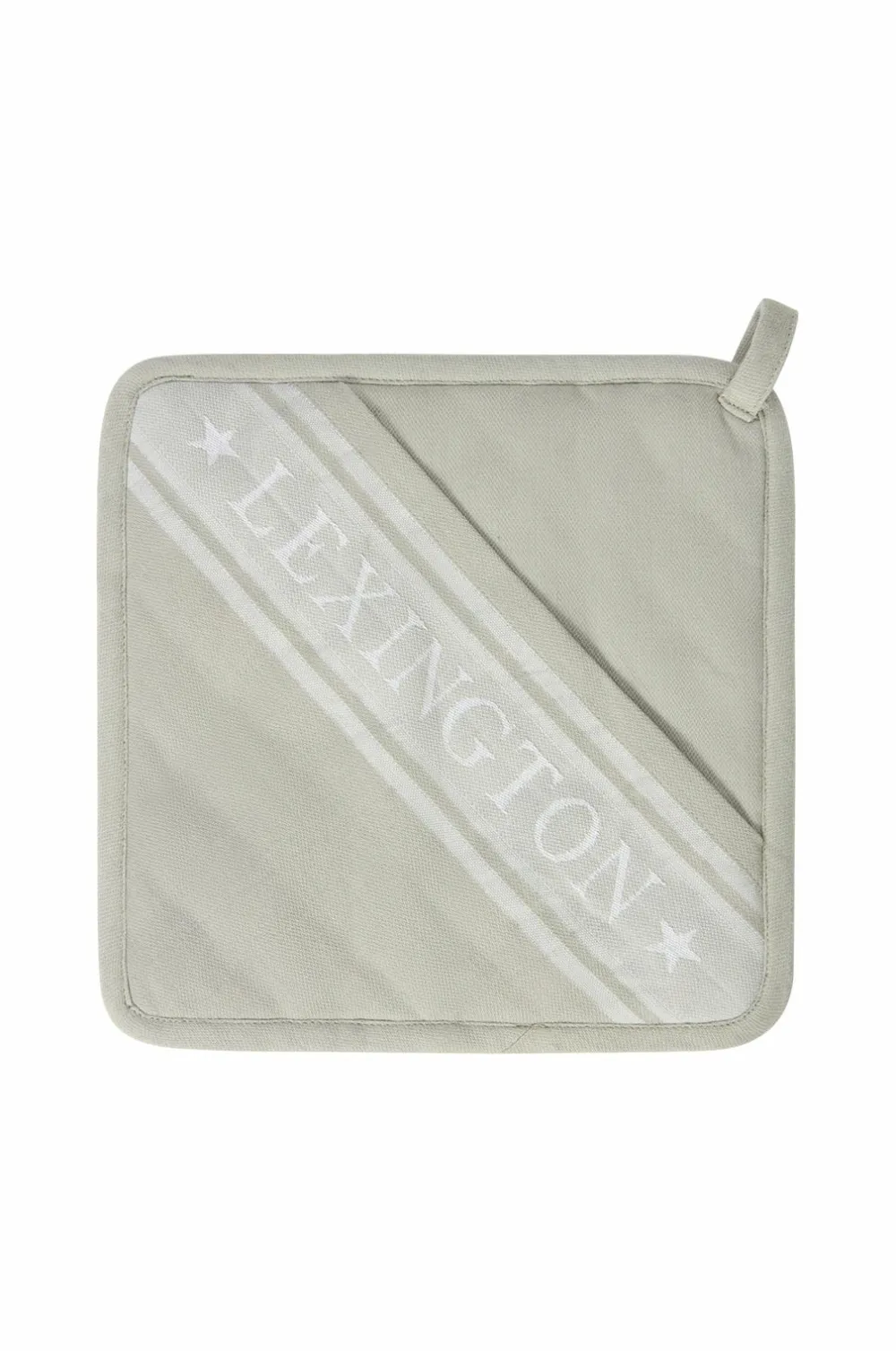 Denne klassiske grydelap med bøjle er fremstillet af 100 % bomuld og har Lexington-logo og jacquardstriber med stjerner. Fuldend dit køkken med det matchende håndklæde, vante og forklæde. Fås i kjoleblå/hvid, due/hvid, salviegrøn/hvid og sort/hvid.