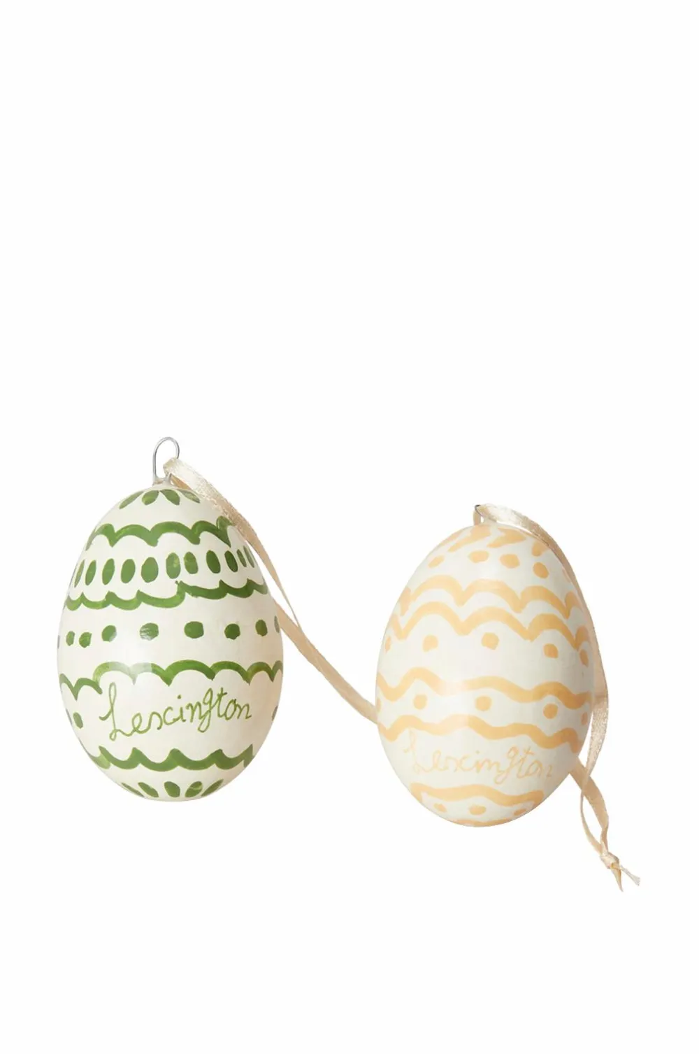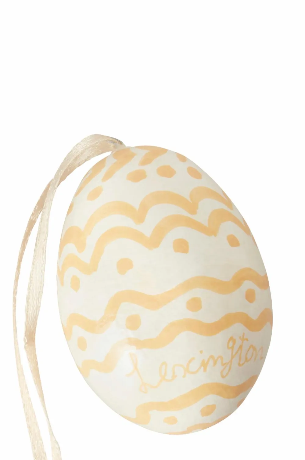 Lexingtons påskeæg i papmaché er det perfekte tilbehør til at sætte prikken over i’et på dit påskebord. Håndmalet af håndværkere i Indien som et sæt af to (et grønt æg og et gult æg, begge med satinbånd til ophængning) for at passe perfekt til Lexingtons påskedug, servietter og servietringe. Håndmalingen giver hvert æg sin egen personlighed. Vi synes, det er en elegant og festlig måde at fejre denne helt særlige højtid med sine kære.