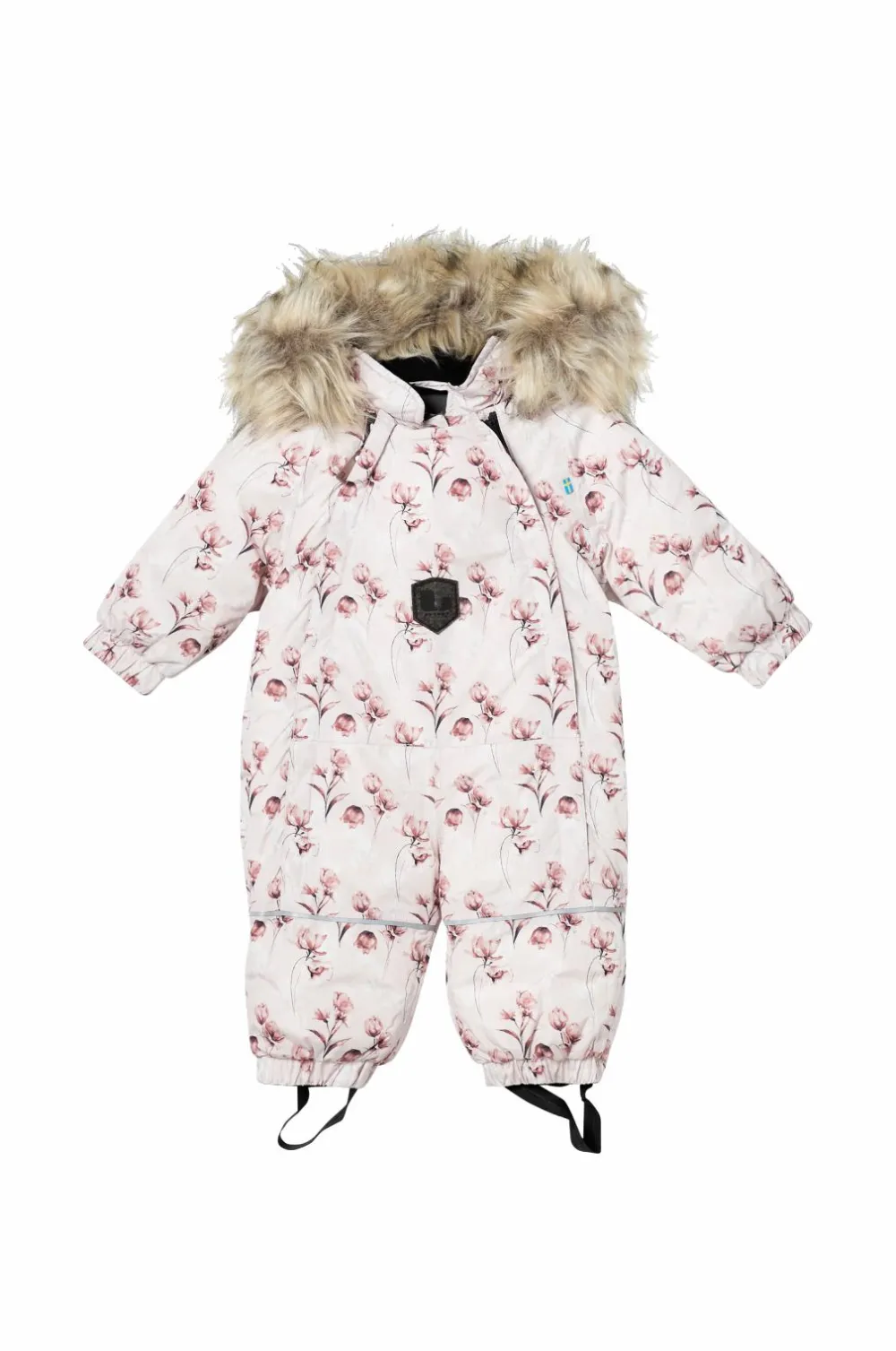 Vinterflyverdragt Frosty Babyoverall fra Lindberg er en vatteret, let og smidig flyverdragt med vandsøjletryk 5.000 mm og åndbarhed 5.000 g/m2/24h. Tapede sømme og blødt bomuldsfor. Dobbelte lynlåse foran gør det nemt at få dragten på. Aftagelig, vatteret hætte med aftagelig kant af kunstpels. Høj krave med blødt fleecefor. Elastiske ben- og ærmekanter med ombuk. Fodstropper og refleksdetaljer.