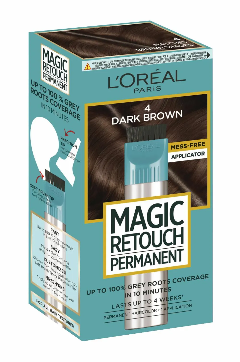 Magic Retouch permanent hårfarve til udvoksninger giver et quick-fix mellem hårfarvninger. Formlen matcher din hårfarve og giver et smukt og jævnt resultat med op til 100% dækning af grå hår – på kun 10 minutter! Den smarte applikator gør det nemt og hurtigt at skjule dine udvoksninger.