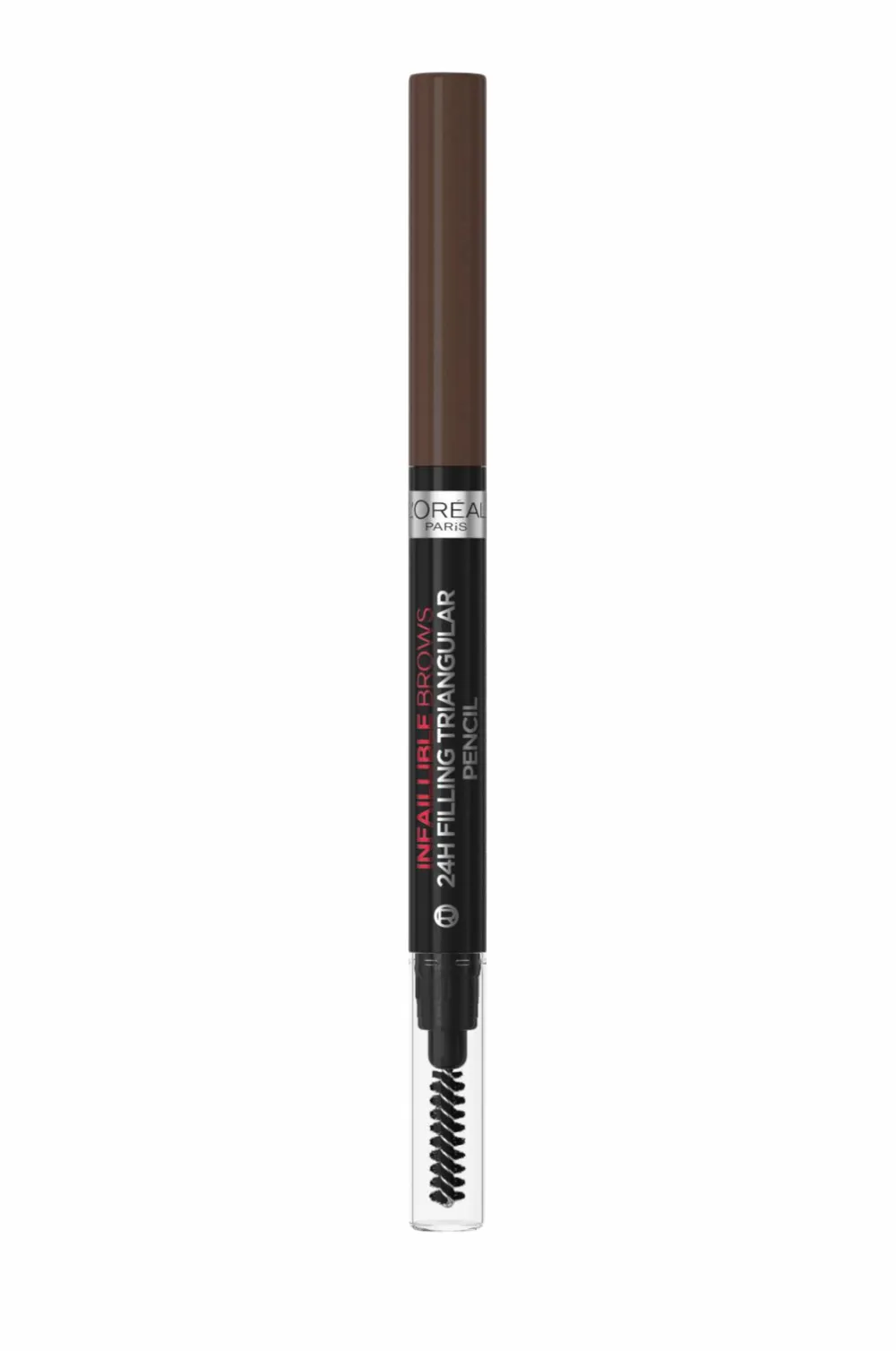 Med L’Oréal Paris Infaillible Brows 24H Filling Triangular Pencil kan du skabe definerede bryn med et naturligt resultat. Holder op til 24 timer*. Formlen har en blød og cremet konsistens, og den trekantede spids gør det nemt at påføre og udfylde farve. I den anden ende har 24H Filling Triangular pencil en børste så du kan forme og style dine bryn. Vandfast og blød formel som ikke smitter af og som føles behagelig hele dagen.