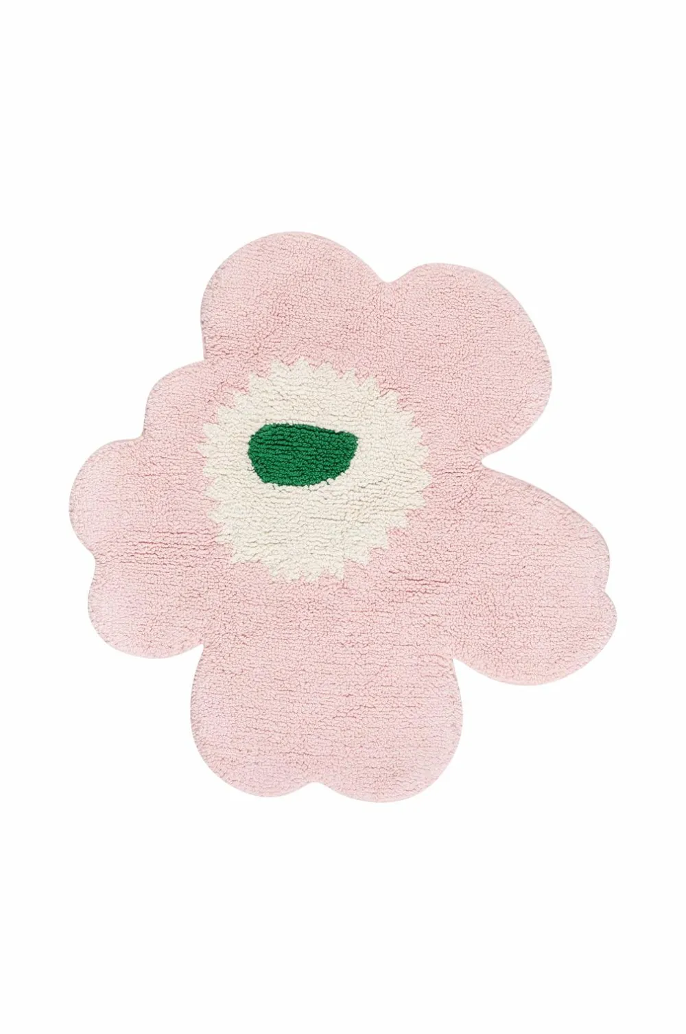 Den blomsterformede, tuftede bademåtte fra Unikko er lavet af økologisk bomuld. Den bløde tuftede overflade og den håndskårne form giver hver bademåtte et unikt udseende, så der kan forekomme små forskelle mellem produkterne. Bademåtten har en skridsikker bagside. Unikko Marimekko, der symboliserer kreativitet, blev født i en tid, hvor der stort set ikke var nogen blomstermotiver i Marimekkos kollektioner. Maija Isola var imidlertid fascineret af blomstertemaet og besluttede sig for at skabe en hel serie af nye blomsterprint.