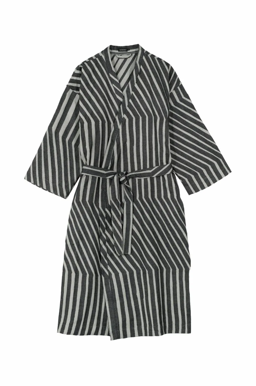 Den mønstrede Kalasääski badekåbe er lavet af let økologisk bomuldsfrotté med jacquardstrik. Kåben har sidelommer, et separat bælte og bæltestropper i to forskellige niveauer, så du kan vælge den højde, der passer bedst til dig. Striber har altid været en integreret del af Marimekkos mønsterverden. Kalasääski (osprey), et levende frihåndsmønster af lodrette og diagonale striber, er et af de utallige stribede designs, som Maija Isola har skabt for Marimekko.
