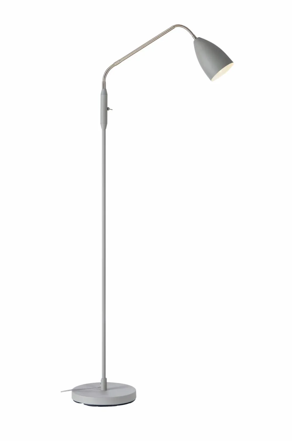 Patro Gulvlampe fra markslöjd. Skærm og base i metal. Justerbar, fleksibel arm i stål med indbygget kontakt. 3-trins dæmpbar led. 100% 450lm, 75% 225lm og 50% 135lm, farvetemperatur 3000k. 2 m tekstilkabel og vægstik. Højde 140 cm. Max 4,8w. Klasse ii. Udskifteligt led-modul sælges også som reservedel, led-modul 230v 4,9w 3-trins dæmpbart.