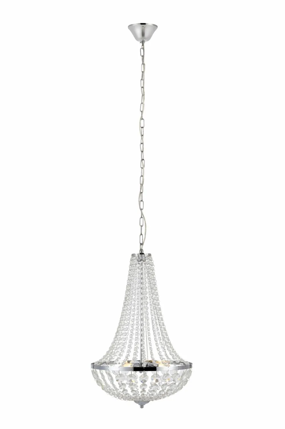 Klassisk krystallysekrone med maskinslebne, klare glasprismer som spreder et fint lys og lidt luksus over spisebordet! Godkendt til badeværelser. Loftstik medfølger ikke pga. nye EU-regler. Det kan købes separat.