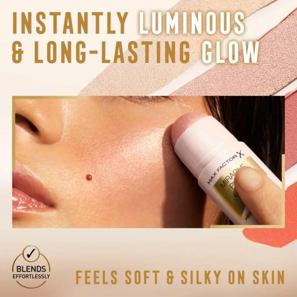 Skab et naturligt farveslør med Max Factor Miracle Pure Blush Balm, en balm-stick med flere anvendelsesmuligheder, der giver øjeblikkelig glans. Den ultra-cremede, opbyggelige farve blandes problemfrit og lysner og forbedrer din naturlige glød. Balsammen er formuleret med fugtgivende jojobaolie og granatæbleekstrakt med antioxidantvirkning, og den føles blød og silkeagtig på huden. Dermatologisk testet, vegansk formel og velegnet til alle hudtyper, også følsom hud. Find din perfekte duo, og kombiner den med en Max Factor Highlighter Balm for at få farve og glød, der holder hele dagen.