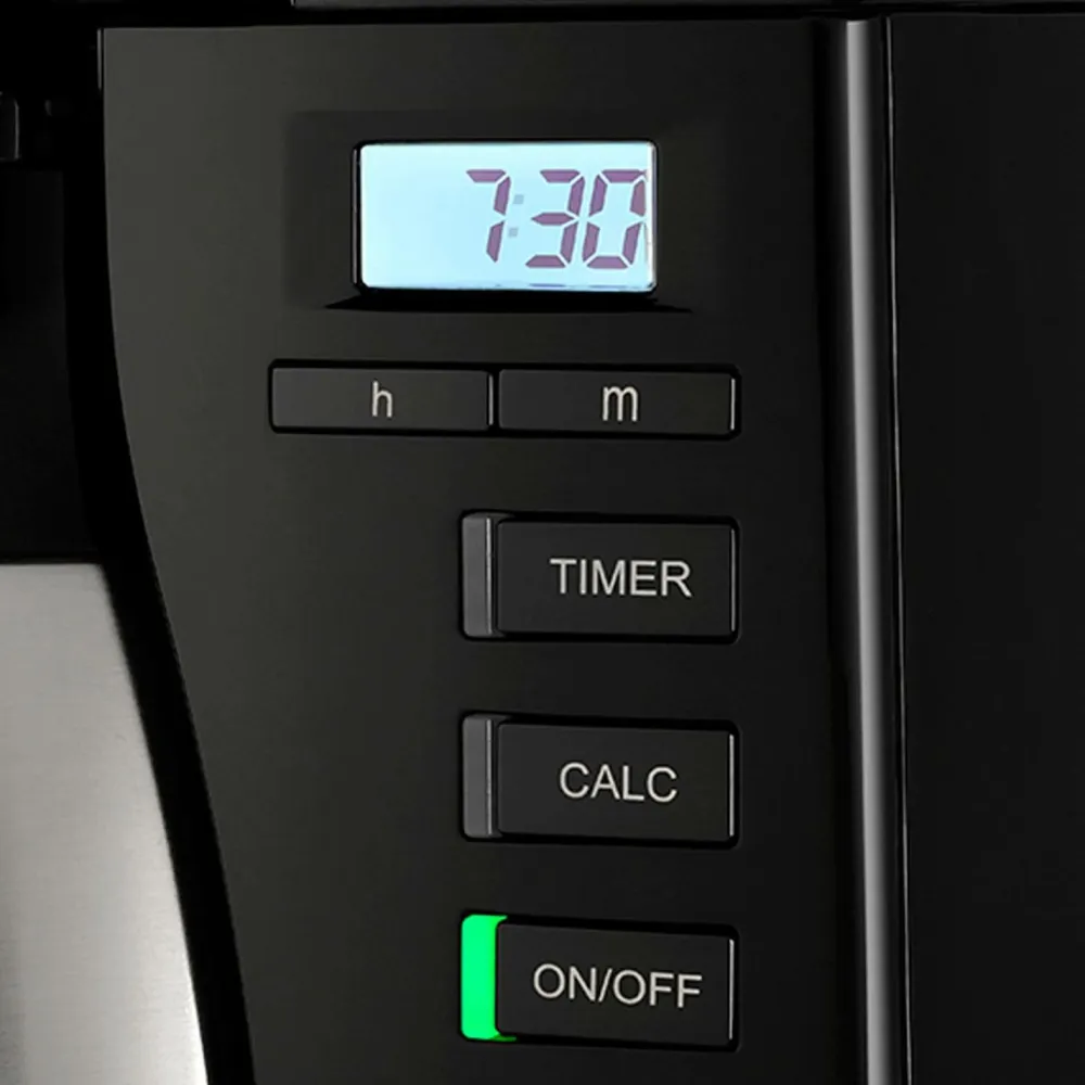 Melitta® LOOK® Therm Timer giver langvarig kaffenydelse på det ønskede tidspunkt! Bare forbered vand, kaffefilter og kaffepulver, indstil tiden, og så kan du slappe af og nyde en kop kaffe på et bestemt tidspunkt. Og takket være den dobbeltvæggede isolerede kande i rustfrit stål holder den anden og tredje kop sig også varm og frisk i lang tid.