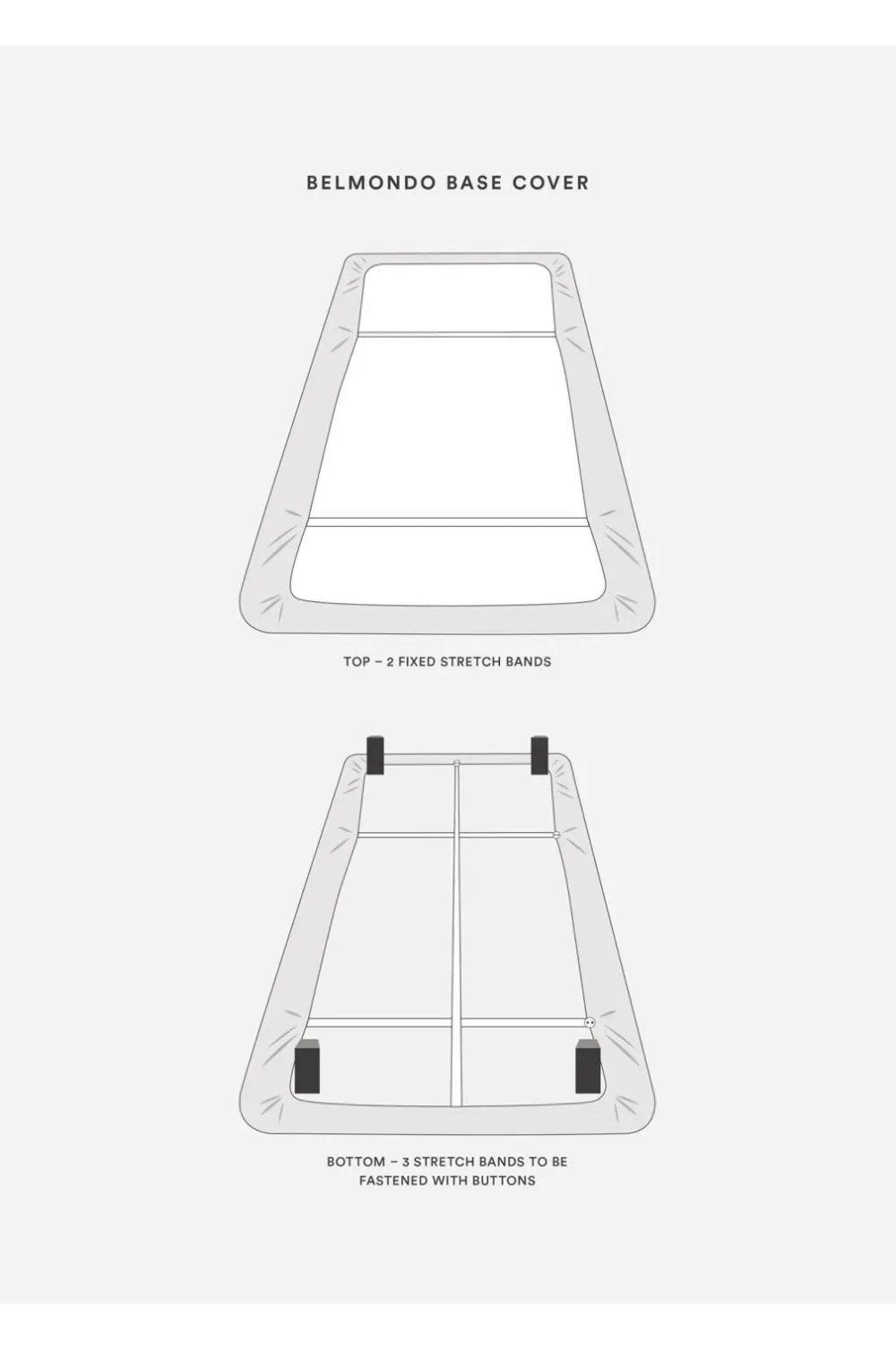 Bundbetrækket er nemt at montere på madrassen og fastgøres under sengen med elastiske bånd udstyret med knapper for at sikre, at det sidder perfekt på plads.