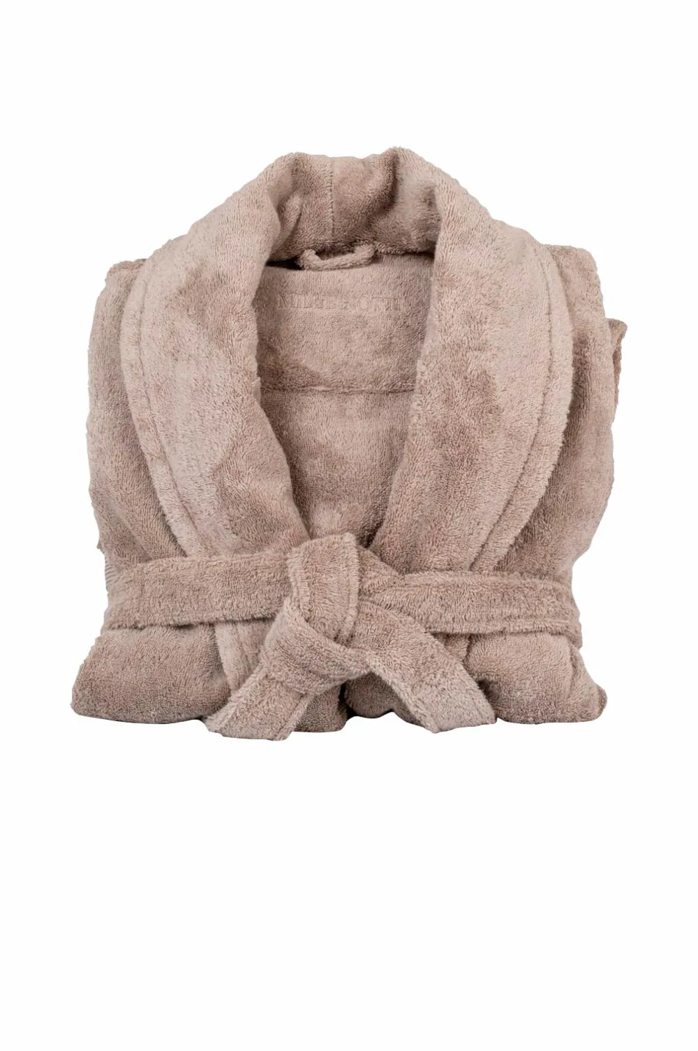 Badekåbe i blød ringspundet frotté af kæmmet bomuldsgarn i 100% økologisk bomuld. Vægt 450 g/m2. Designet med dekorativ kant på lommerne og Mille Notti-logo broderet på indersiden af nakken. Certificeret ifølge GOTS (Global Organic Textile Standard) Oeko-Tex Standard 100. Fremstillet i Portugal. Vaskes på 60°. For at bibeholde absorptionsevnen anbefales vask uden skyllemiddel. Hængetørres eller tørretumbles ved middelvarme.