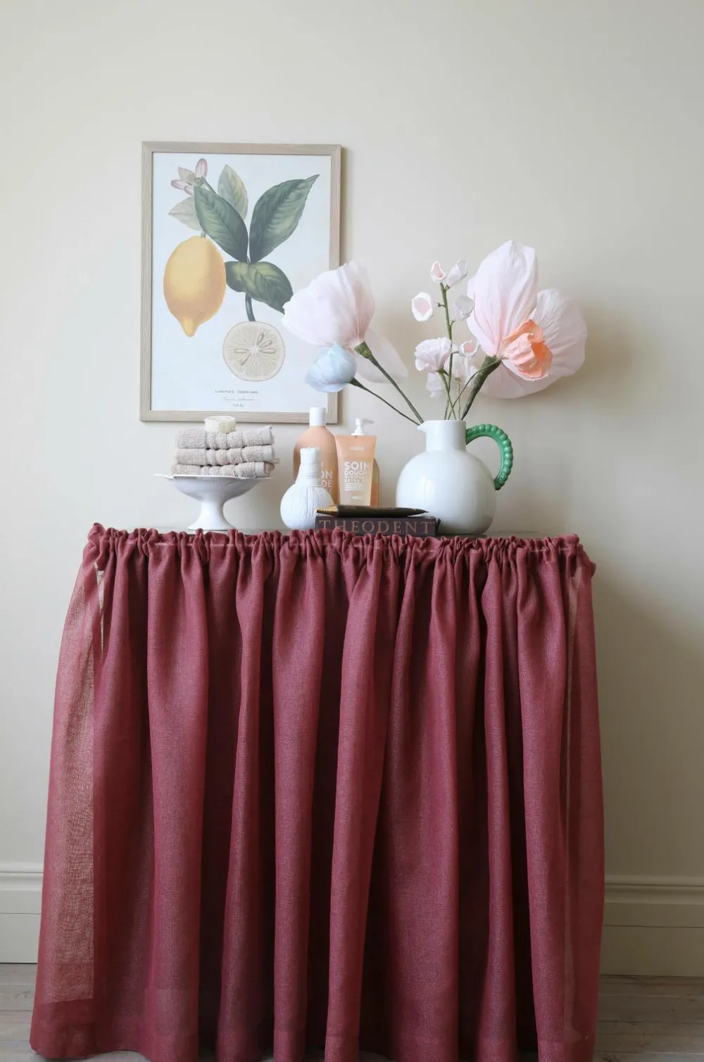Ekstra bredt Bistro-gardin lavet af stofrester fra industrien. At genbruge materialer i stedet for at fremstille nye er et mere bæredygtigt valg og et skridt i retning af at reducere tekstilaffald. Stoffet er løst vævet med tykke tråde med glittereffekt og er meget gennemsigtigt. Gardinet er skræddersyet med en lomme, der passer til en lille gardinstang, og har en lille rynke i toppen. Gardinet har et skræddersyet look med klassiske usynlige sidekanter og en dobbelt fold i bunden. Kanten forneden har også en åbning i hver side, så gardinet kan bruges som spændingsgardin i vinduer, på døre eller skabe. Stoffet er Oeko-Tex® Standard 100-certificeret, hvilket er en garanti for, at det ikke indeholder sundhedsskadelige stoffer.