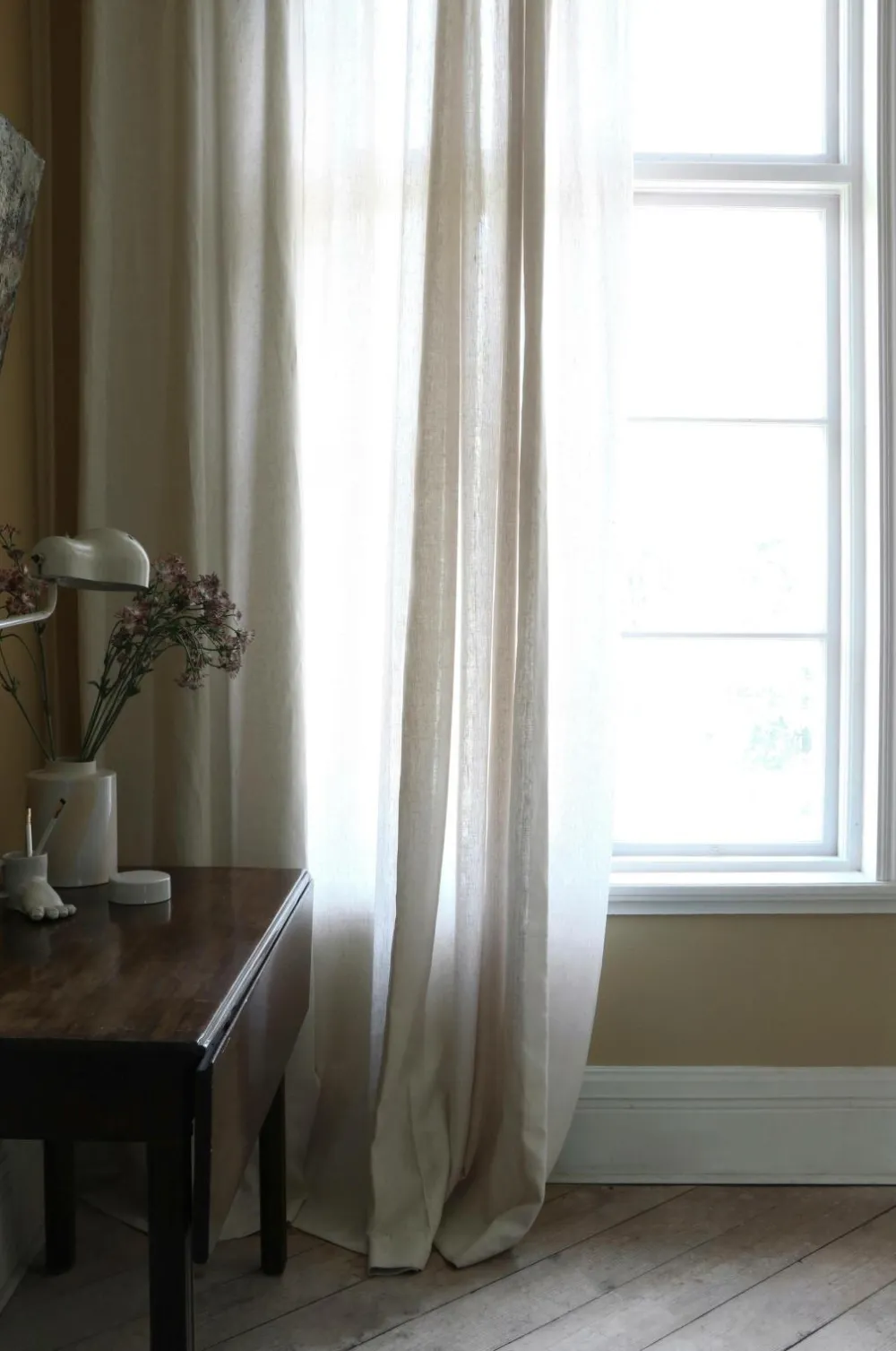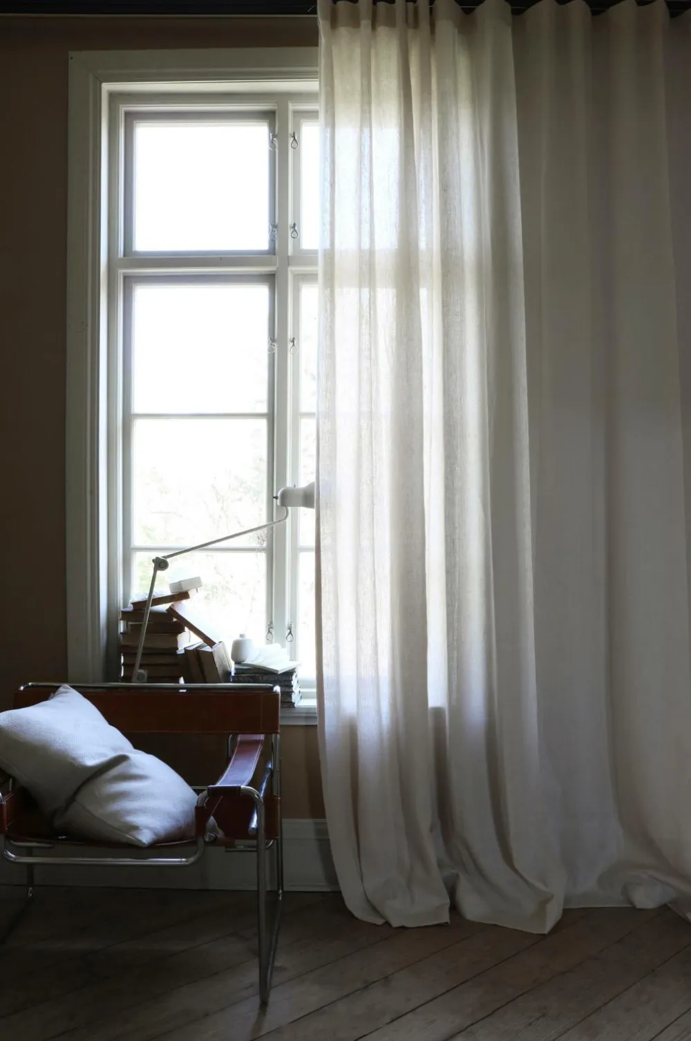 Luksuriøst og tungt hørgardin. 290 cm bredt, hvilket betyder, at det passer til både almindelige og til store vinduespartier. Gardinet er vævet i 100% tætvævet hør. Hør er et naturligt materiale, som bliver smukkere med tiden. Gardinet har et skræddersyet look med klassiske, usynlige sidesømme og dobbelt oplæg forneden, så det får den rigtige tyngde. 4-fingerkrog medfølger til hver gardinlængde med rynkebånd. Fingerkrogsophæng passer til alle skinner med glidere og almindelige gardinstænger med gardinringe og stropper. 4-fingerkrog anvendes til at skabe flotte folder i gardinet, som giver et velsyet indtryk og lader gardinerne komme til deres ret. Stoffet er OEKO-TEX® Standard 100 certificeret, det vil sige at produktet er testet for at sikre, at det ikke indeholder sundhedsskadelige stoffer. 30 grader skånsom maskinvask eller kemisk rens. Bredde 290 cm Højde 250 cm og 290 cm. Sælges stykvis.