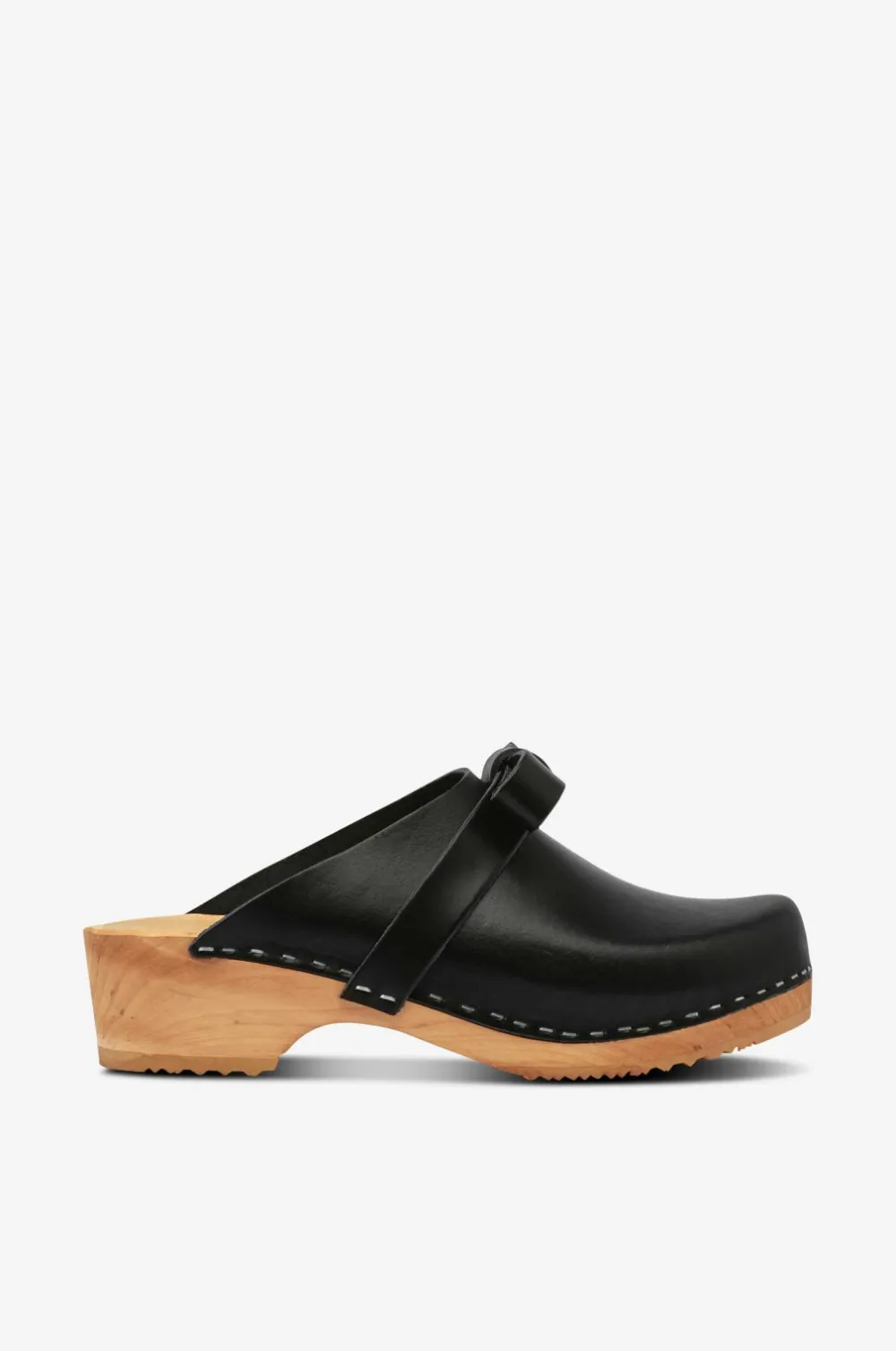 I år fylder Mimou 20 år, og det fejrer de med forskellige produktlanceringer i løbet af året, som længe har stået på deres bucket list. Først ud er en træsko designet af Karin Mannerstål med en stram sløjfe. Grunden til, at valget faldt på Karin til dette designsamarbejde, var helt naturlig. Det var Karin, der skabte Mimous logo for 20 år siden, og Karin er både glad for træsko og sløjfer. Med hendes selvfølgelige og klare designsprog var valget let. Ud over god produktion er Mimou passioneret omkring kontekst, så da de fandt en andengenerations skomagerfamilievirksomhed i de dybe skove i Småland, fik de endelig mulighed for at gøre deres længe ønskede træsko til virkelighed.