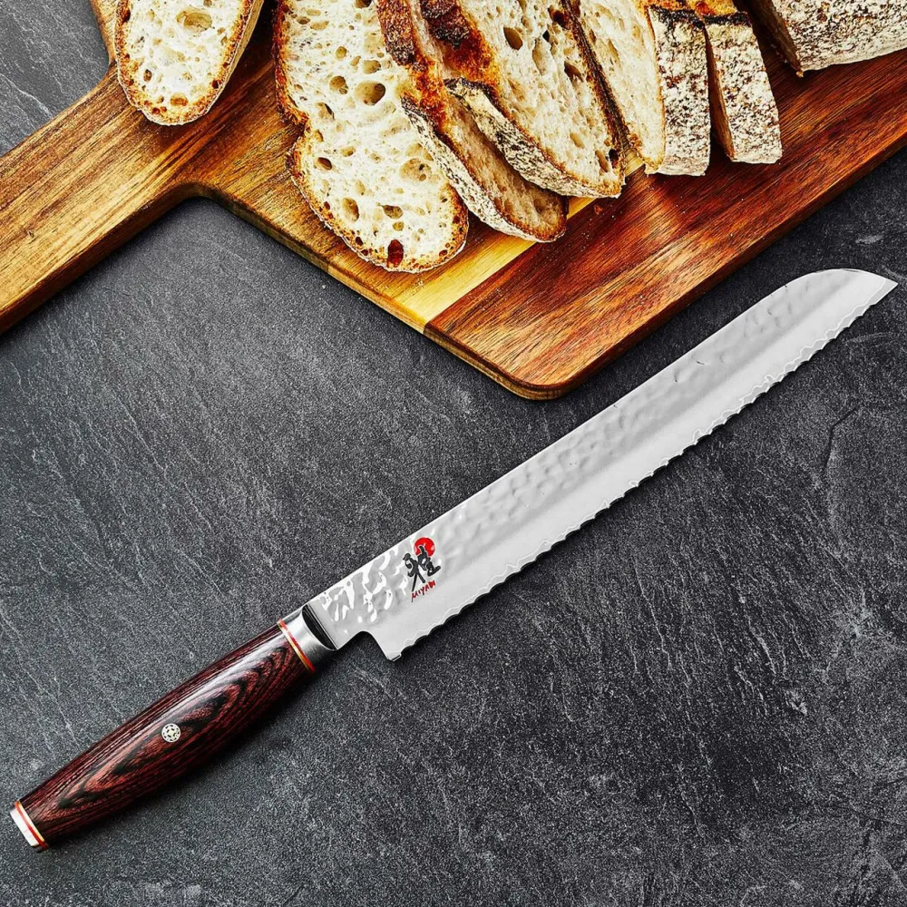 Brødkniven, som er 23 cm, har en kerne af (forædlet SG2) hårdt MC63 Micro Carbide pulverstål, CRYODUR® hærdet til en hårdhed på ca. 63 HRC dækket af 2 lag (Tsuchime) hamret rustfrit stål, som giver kniven et elegant udseende og forhindrer, at råvaren sætter sig fast ved brug. Slibevinkel 19° slebet ifølge Honbazuke-metoden. Ergonomisk smukt skaft af pakkatræ. Livstidsgaranti på materiale- og produktionsfejl. Fremstilles i Seki, Japan.