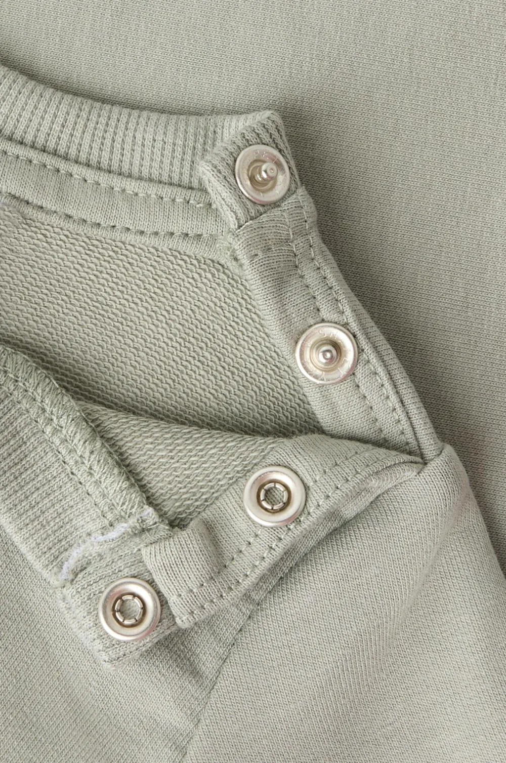 • Rund, ribbet halsudskæring med trykknapper på skuldrene